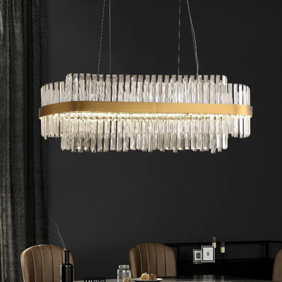 The Hotel Modern LED Chandelier is an enchanting masterpiece that captures the essence of refined elegance and minimalist charm. With its combination of sleek stainless steel and glistening crystal, it casts a radiant glow that transforms any room into a sanctuary of sophisticated light. Whether placed over a dining table or as a grand centerpiece in a foyer, this chandelier is a testament to modern luxury. Its golden finish harmonizes with diverse palettes, making it an indispensable asset to captivating, high-end interiors.