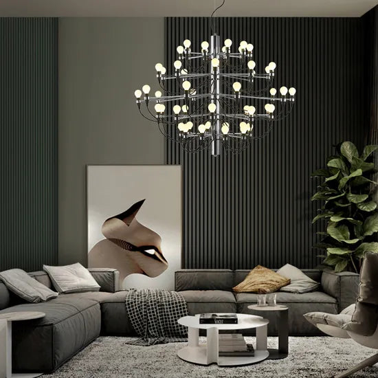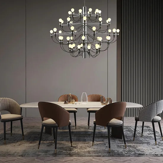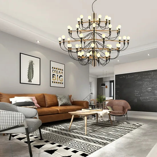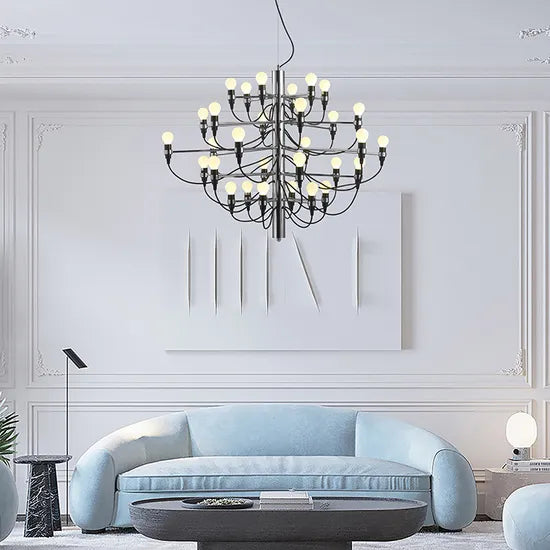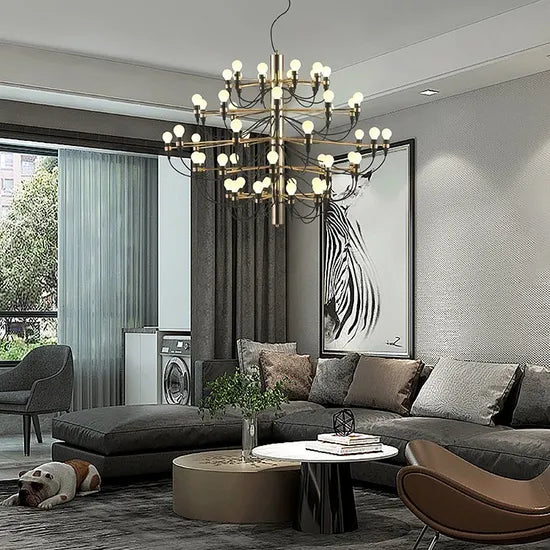 This chandelier transforms a room with its striking balance of iron craftsmanship and modern aesthetic, casting a warm, inviting glow over expansive spaces. Its standout feature, a sturdy black iron finish, serves as both a bold statement and a harmonious complement to minimalist furnishings. Picture it suspended above a grand dining table or in a high-ceilinged foyer, capturing attention and inspiring conversation. Truly an essential piece for those who appreciate the fusion of form and function in luxurious living.