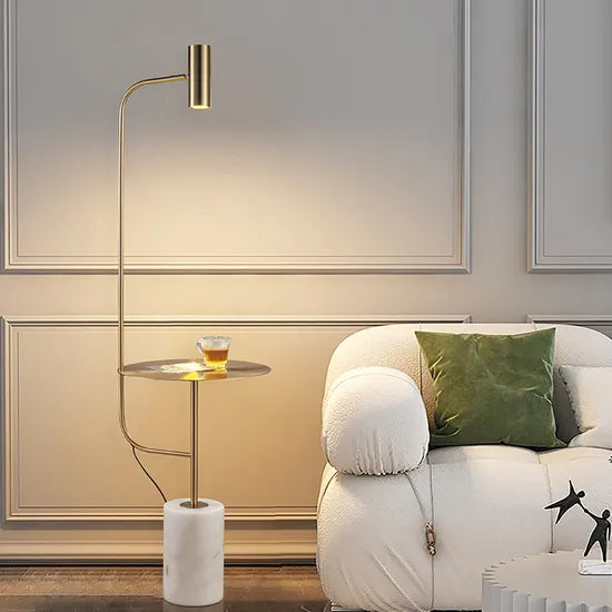 Introducing a floor lamp that artfully melds form and function to transform your interiors into a realm of refined sophistication. Its sleek black and gold finish radiates a contemporary flair, while the marble base invites a touch of classic luxury. Imagine it standing proudly in your living room corner or beside your reading chair, casting a warmly modern glow. More than just illumination, this piece is a testament to thoughtful design, essential for those curating a sanctuary of stylish living.
