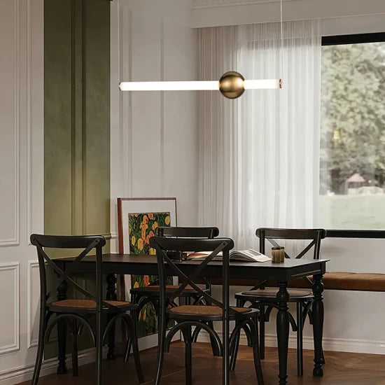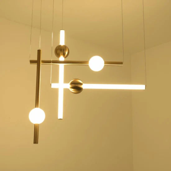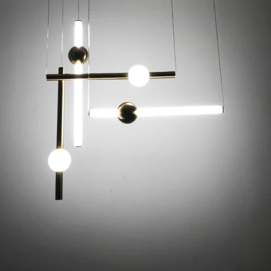 Transform any room into a gallery of light with the Gold Iron Ball Chandelier. Its opulent design, characterized by white glass tubes and gleaming golden accents, captures the eye and imagination alike. Hang it over a Victorian dining table or introduce it as a centerpiece in a modern living room. This chandelier evokes a sense of grandeur and artistic allure, making it a quintessential feature of an elegant home.