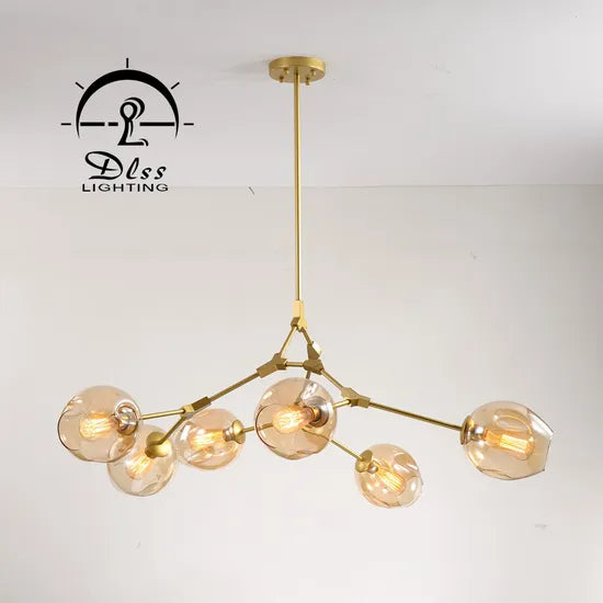 The Modern Clear Glass Ball Iron Decoration Restaurant Chandelier brings a touch of elegance and modern flair to any dining area or restaurant with its sleek glass spheres and sturdy iron frame. Designed to captivate and illuminate, this chandelier combines style with functionality, providing an ambient lighting solution that's as sophisticated as it is effective. Featuring a gold, black, and clear color palette, it complements numerous interior aesthetics while offering a striking focal point.