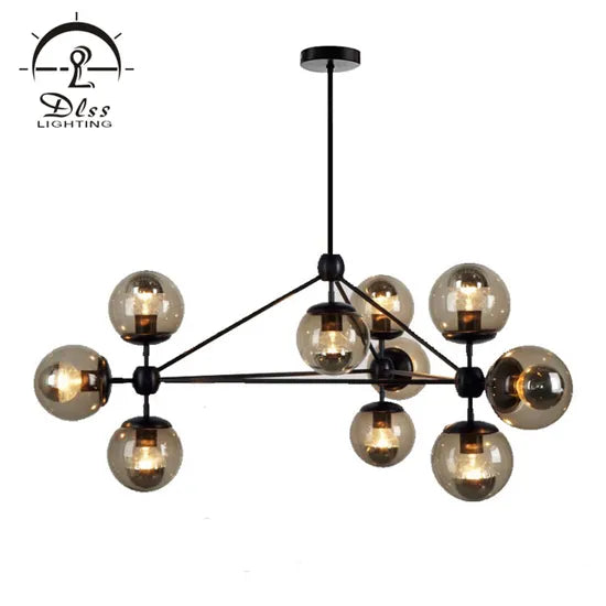 Illuminate your space with the Modern E27 Chandelier Lamp by DLSS Lighting, a stunning blend of style and functionality. Featuring a sleek iron and glass design in striking black with amber, smoky, or clear glass options, this pendant light adds a touch of sophistication to any office or home setting. Its contemporary design, paired with high-quality materials, ensures lasting durability while providing warm, inviting light.