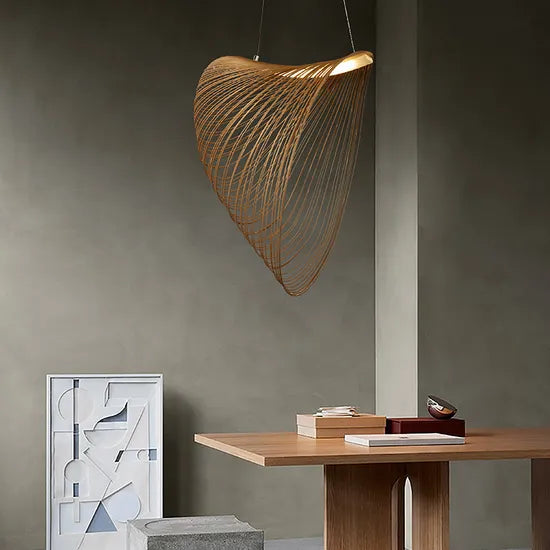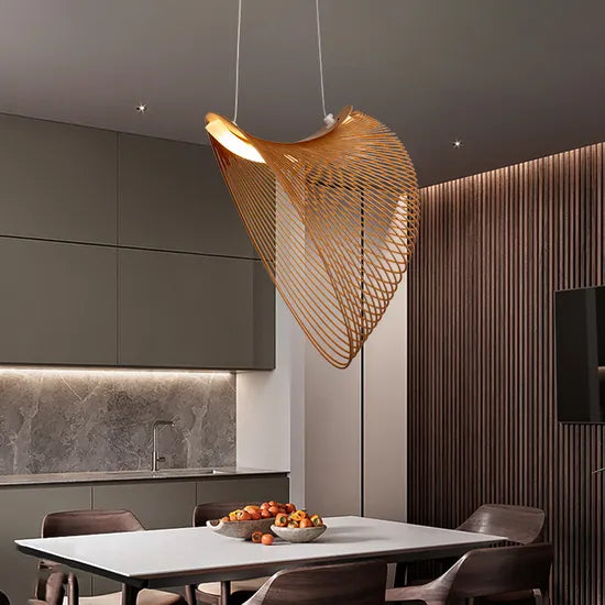 With this Modern Wood LED Pendant Lamp, transform your mere surroundings into an extraordinary canvas of light and shadow. The lamp's sleek wooden contours add an alluring warmth, breaking the monotony of metal and glass. Style it over a dining table or in a serene corner to act as a captivating centerpiece. Embrace this understated luxury to bring an artful and dynamic touch to your most cherished spaces, establishing it as a must-have design element for contemporary living.