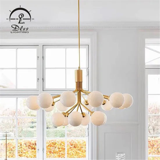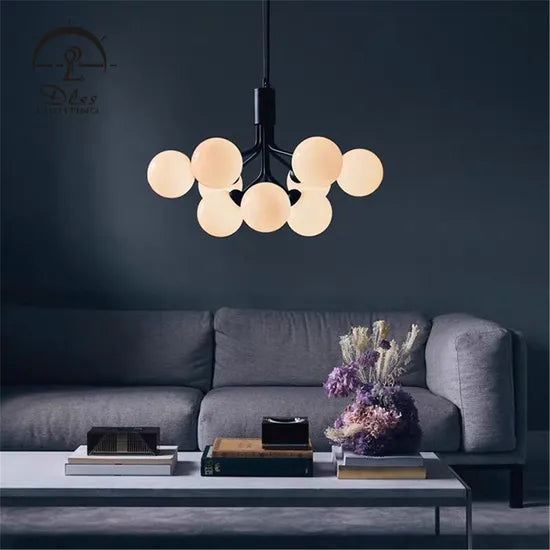 Envision a stunning play of light and shadow, emanating from the exquisitely crafted Multiple-Glass Modern Restaurant Chandelier. Its sleek black metal frame cradles ethereal white glass globes, conjuring a celestial aesthetic that elevates any dining or living space. Use it as a centerpiece above an elegant dining table or to add allure to a luxurious lounge. Embrace this chandelier to transform your environment into a beacon of contemporary sophistication, seamlessly blending both form and function for a truly mesmerizing impression.