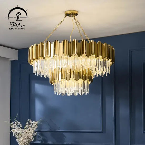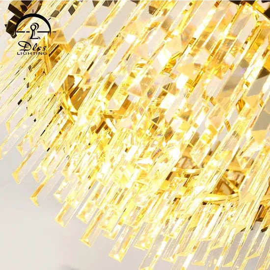 Imagine a grand entrance or a masterful dining room, where the Optical Grade Crystal Pendant Chandelier casts its resplendent glow, turning ordinary moments into extraordinary experiences. Its lustrous gold finish serves not only as a lighting fixture but also as a piece of sculptural art, adding depth and dimension to any room. Consider hanging this chandelier above a sleek dining table or in an open foyer where its understate. The Optical Grade Crystal Pendant Chandelier is the epitome of modern luxury, essential for any designer's palette aiming to create a haven of light and elegance.