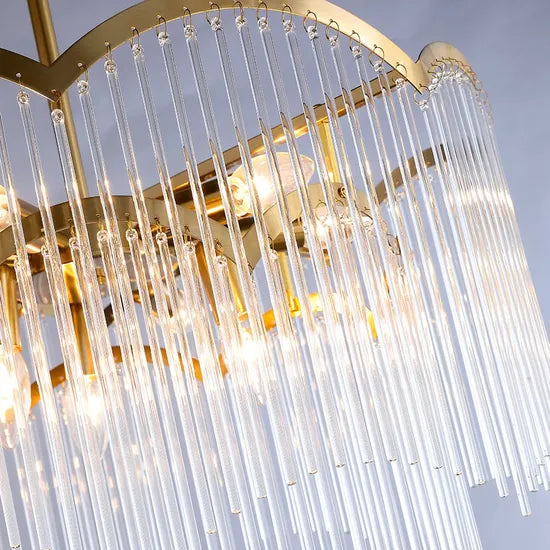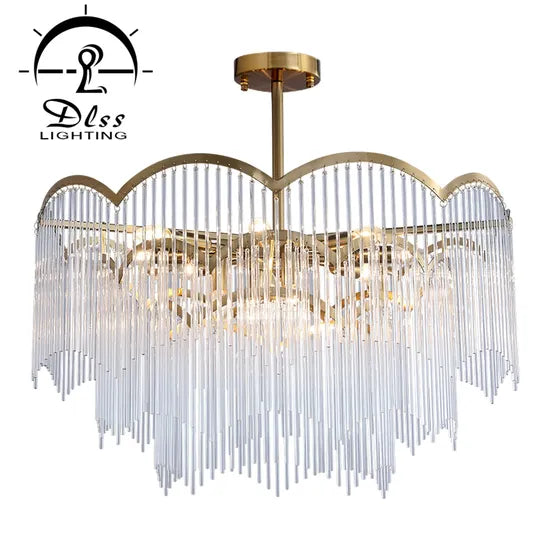 Elevate your interior with the DLSS Modern Nordic Home Decor Pendant Chandelier. This luxurious design combines the elegance of sparkling crystals and a sophisticated gold finish, bringing a touch of opulence to any space. Versatile in design, it's perfect for dining rooms, bedrooms, or modern bars, and its simple yet stunning style makes it an essential centerpiece.