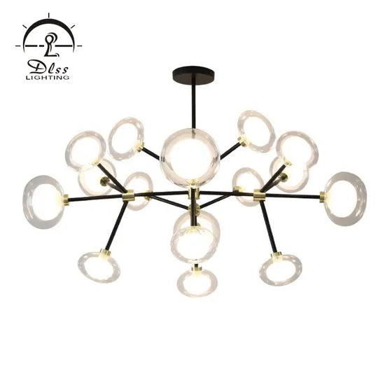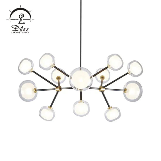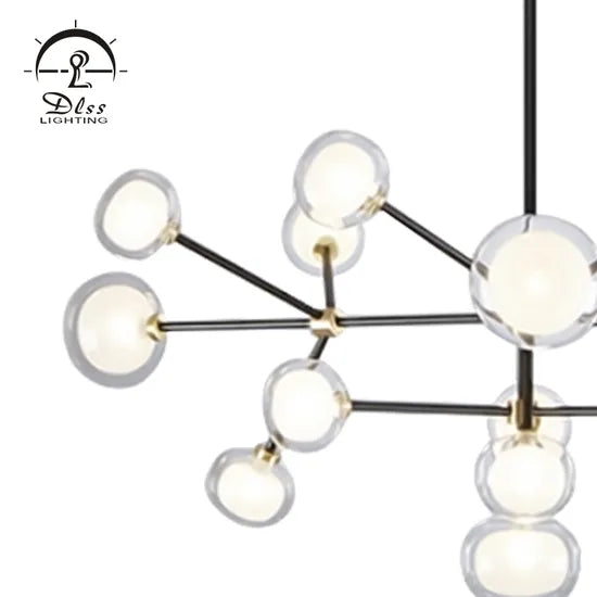 Illuminate your space with the Imagic Bubble Glass Pendant Chandelier—a modern blend of artistic design and functional elegance. This chandelier's sleek black and gold iron frame houses stunning glass globes that mimic entrancing bubbles, making it an ideal centerpiece for any contemporary living area. Designed for versatility, this chandelier suits various environments, from cozy dining rooms to luxurious hotels.