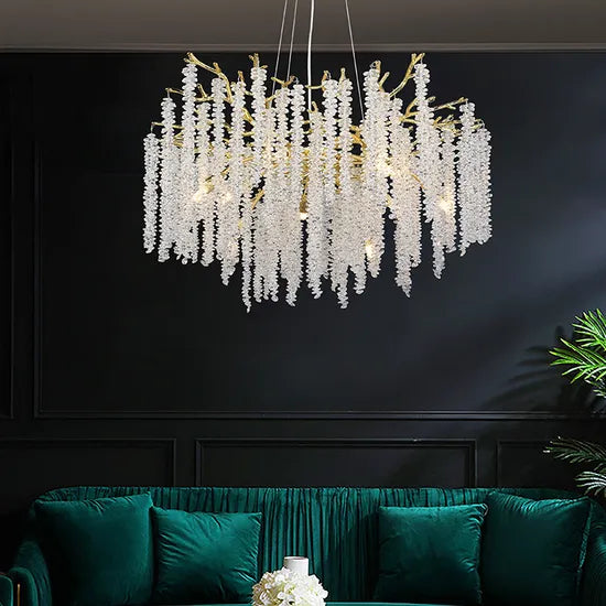 - Golden Frame: Lustrous golden finish enhances the opulence of the chandelier.