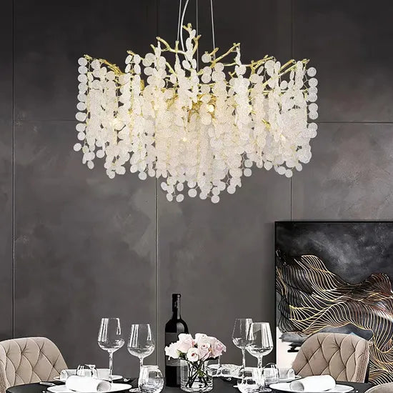 Transforming spaces into luxurious sanctuaries, the DLSS Modern LED Chandelier does more than light a room—it elevates it. Its golden hue paired with a glassy glow beckons the spirit of contemporary splendor. Hang it above a sophisticated dining table, where its beauty can shine as easily on candlelit meals as it can on grand soirées, projecting a warm, opulent light. This chandelier is not just a decor piece; it's an emblem of refined living.
