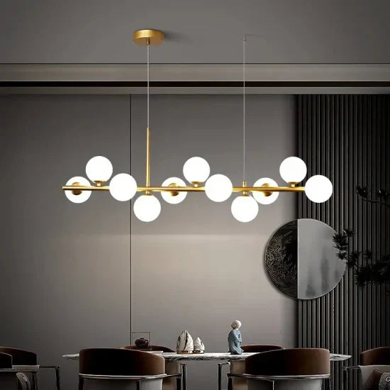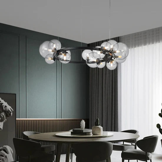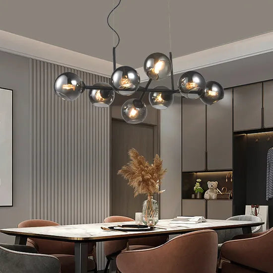 This Nordic Style Glass LED Chandelier transforms dining spaces with its luxurious and minimalist design. Crafted from fine glass and iron, it creates a serene ambiance of modern sophistication. Picture the warm glow of amber and gold hues casting elegant shadows across a richly set dinner table. Incorporate it into spaces needing a touch of restrained opulence, making every meal an occasion. Essential for creating a home that celebrates understated luxury.