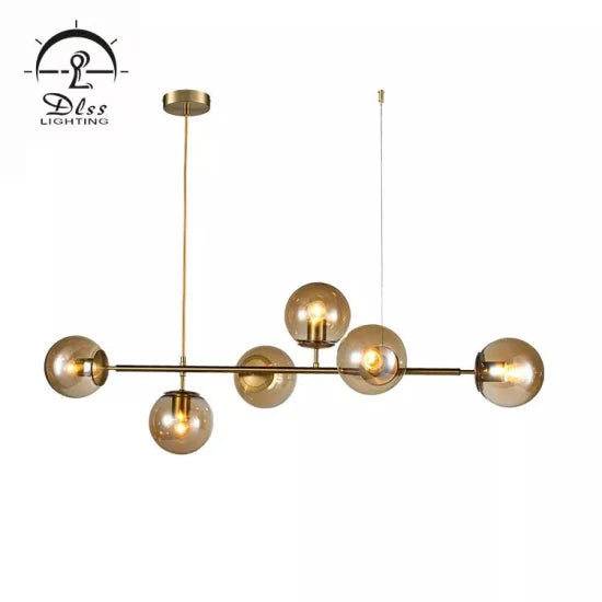 Elevate your dining space with the Nordic Style Modern Home Dining Table Glass Ball Hanging Decorative LED Ceiling Pendant Light. This fixture combines an alluring mix of iron and glass with a sleek Nordic design, perfect for enhancing any contemporary setting. Available in amber with gold or smoky with black finishes, this light offers both style and adaptability to match any decor.