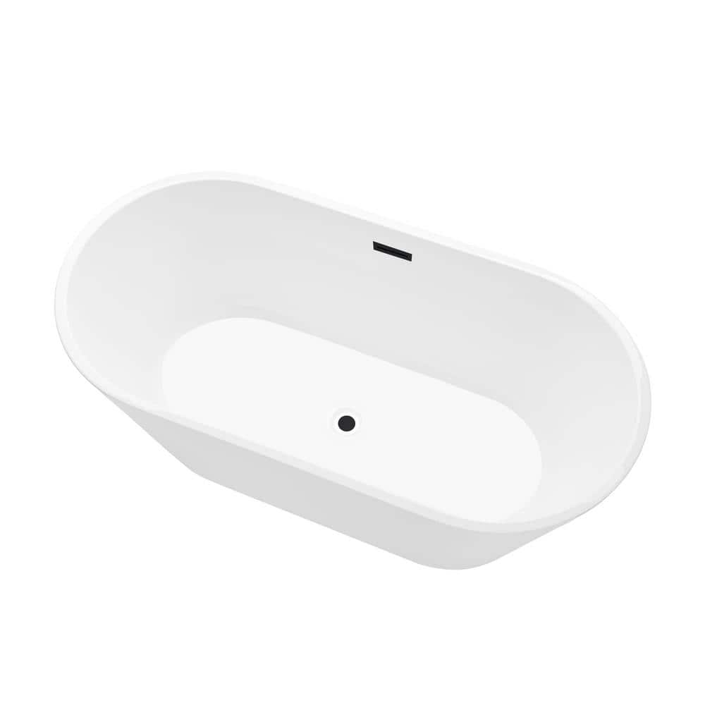 Vanity Art Domme 59 in. Acrylic Flatbottom Freestanding Non-Slip Bathtub in White/Matte Black
