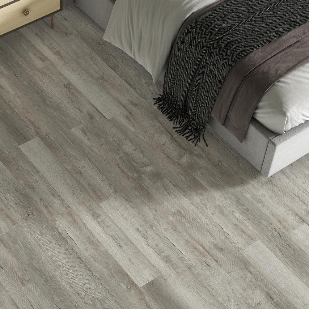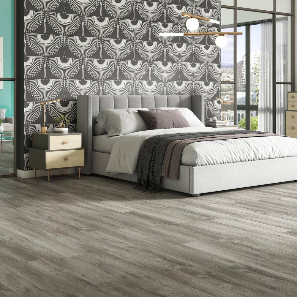 Step into a world where sophistication meets practicality with the DuraDecor Polished Pro Smokey Stone flooring. The intricate blend of light and ashen grey hues, delicately tinged with brown, breathes life and warmth into any room. Picture this flooring as the centerpiece in a modern living room, accented by plush area rugs and sleek furniture, or let its resilient nature polish the bustling spaces of your kitchen. Envision your home transformed into a haven of luxury and durability, with each step resonating style and grace.