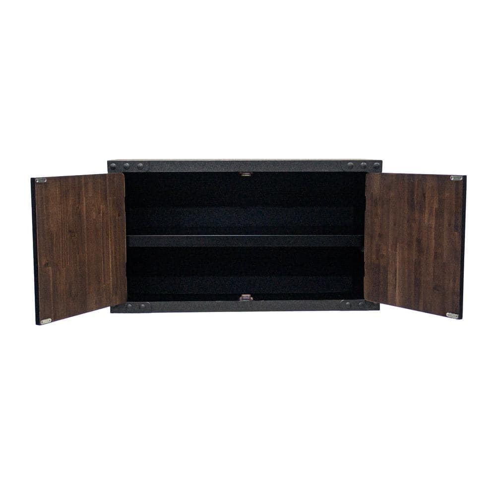 Transform your workspace with the DURAMAX Wall Cabinet, where vintage charm meets superior functionality. The industrial black metal contrasted with wood panels creates a striking visual, essential for a sophisticated interior. Imagine this piece above a workbench or desk, offering not just storage but an aesthetic uplift. Enhance your interiors with a functional art piece that speaks to durability and style, an undoubtedly luxurious touch to any setting.