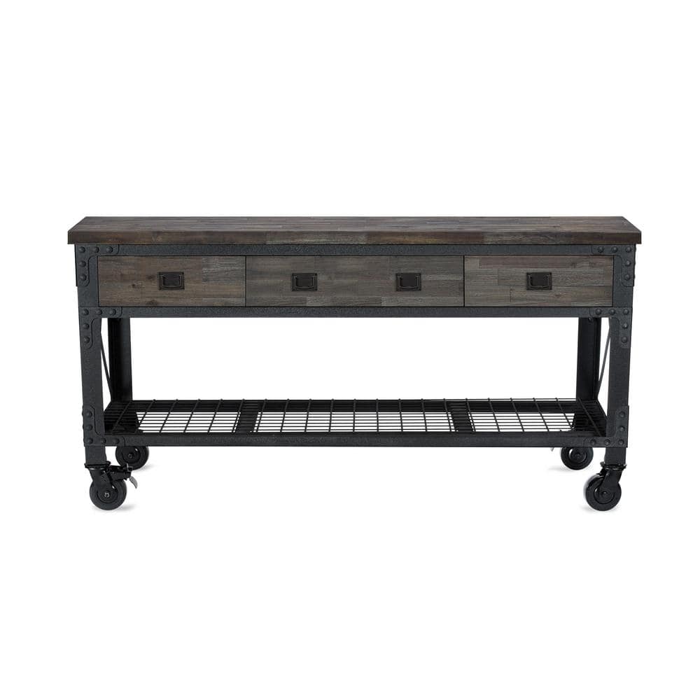 The Duramax Rolling Industrial Workbench is your go-to solution for both workspace and storage. Crafted from powder-coated steel and finished with a rich acacia wood top, this piece offers durability and a sophisticated aesthetic. Its mobility, coupled with robust storage options, makes it a staple for any professional or DIY setup.