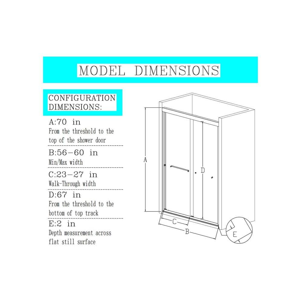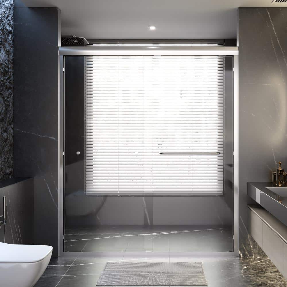 EAKYHOM 56 in. to 60 in. W x 70 in. H Sliding Semi-Frameless Shower Door in Chrome Finish with Tempered Clear Glass