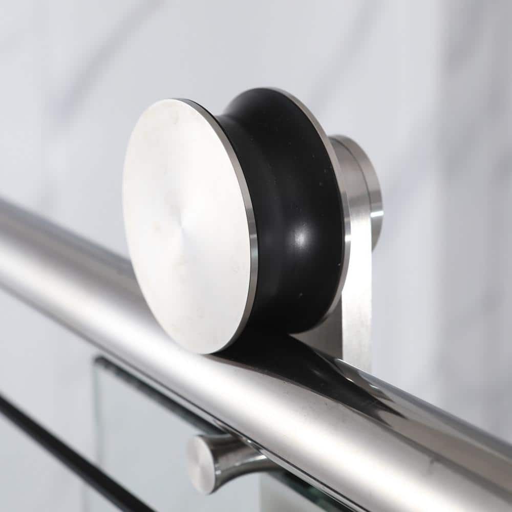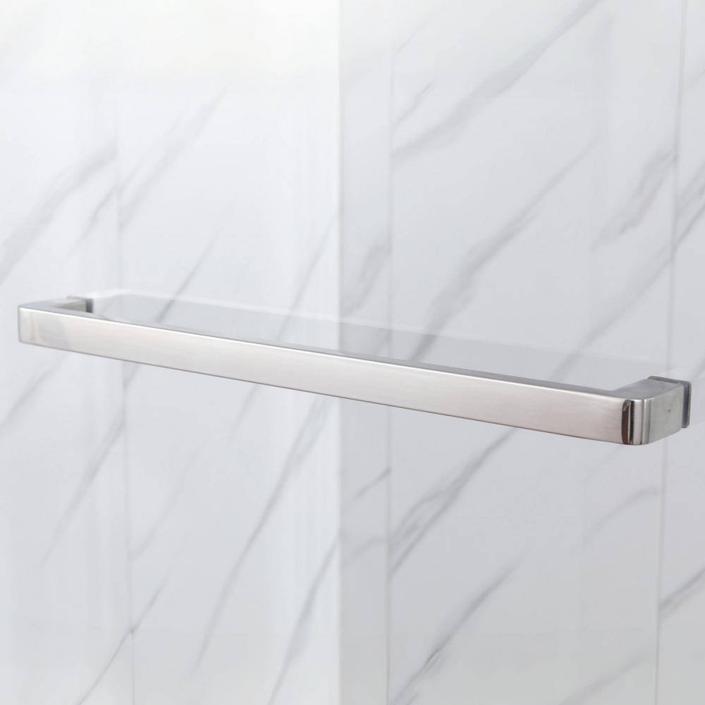 Transform your bathroom with the EAKYHOM Single Sliding Frameless Shower Door. This brushed nickel beauty combines modern aesthetics with robust functionality, thanks to its 5/16 in. tempered glass and explosion-proof film. Experience sophistication with durability in every shower.