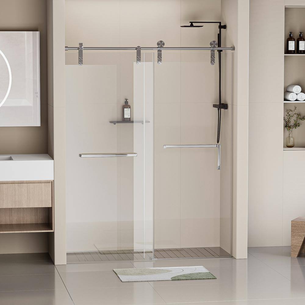 EAKYHOM 56 in. to 60 in. W x 76 in. H Single Sliding Frameless Shower Door in Brushed Nickel Finish with 5/16 in. Tempered Glass