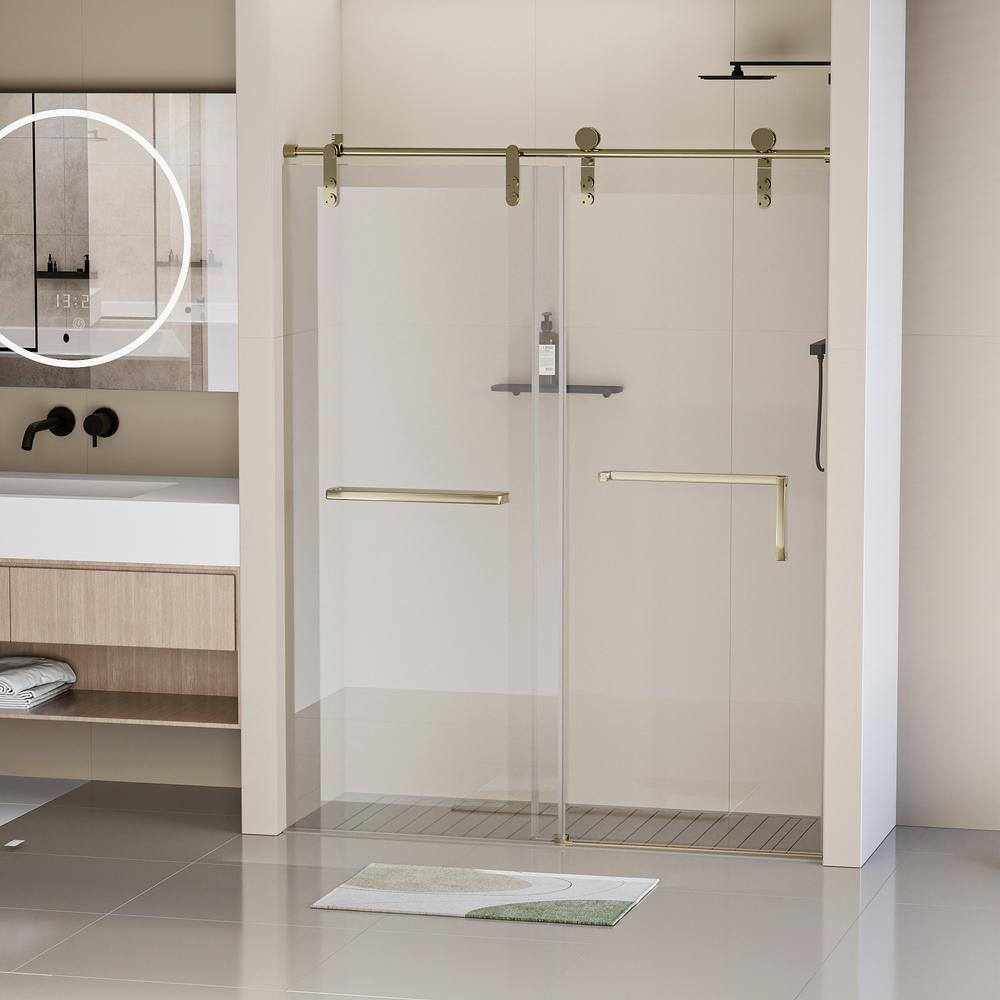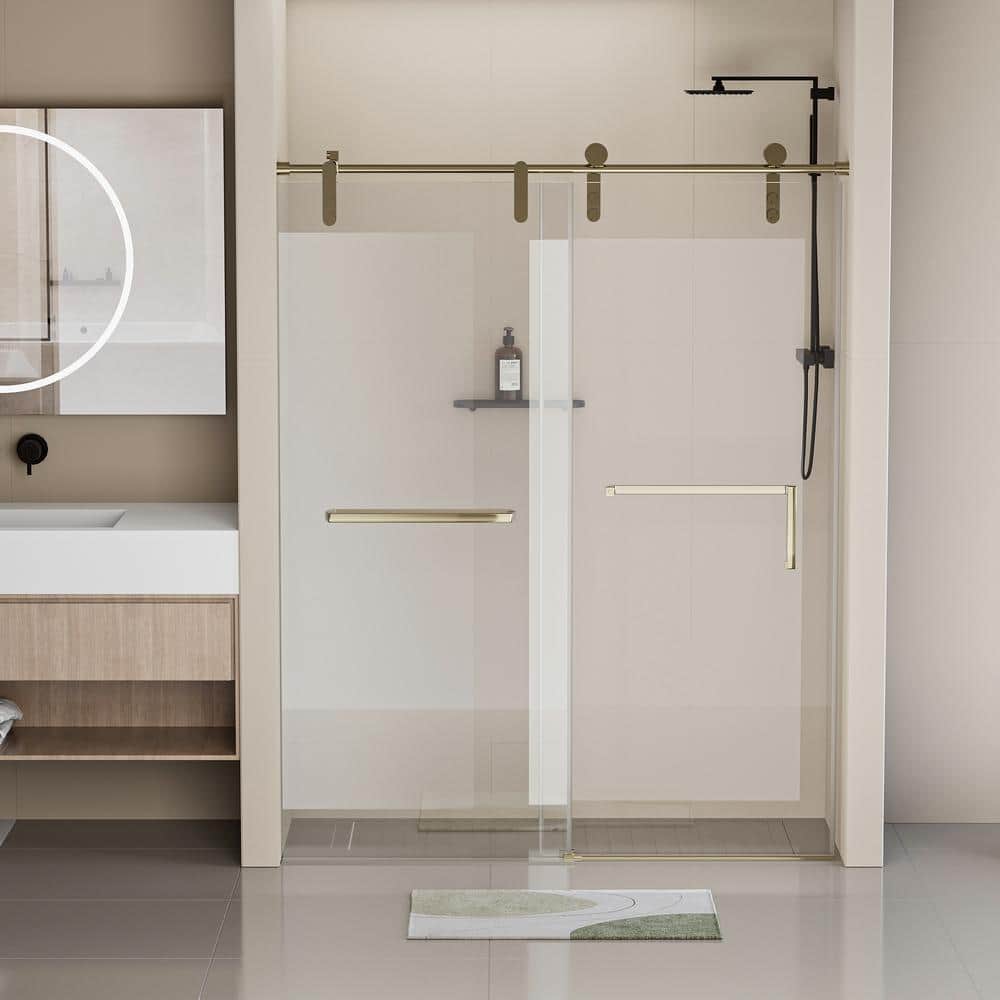 Upgrade your bathroom with the EAKYHOM Gold Sliding Frameless Shower Door. This elegant door combines a luxurious gold finish with high-quality tempered glass to deliver style, functionality, and lasting safety. Perfect for modern spaces, its frameless design enhances the openness of any bathroom.