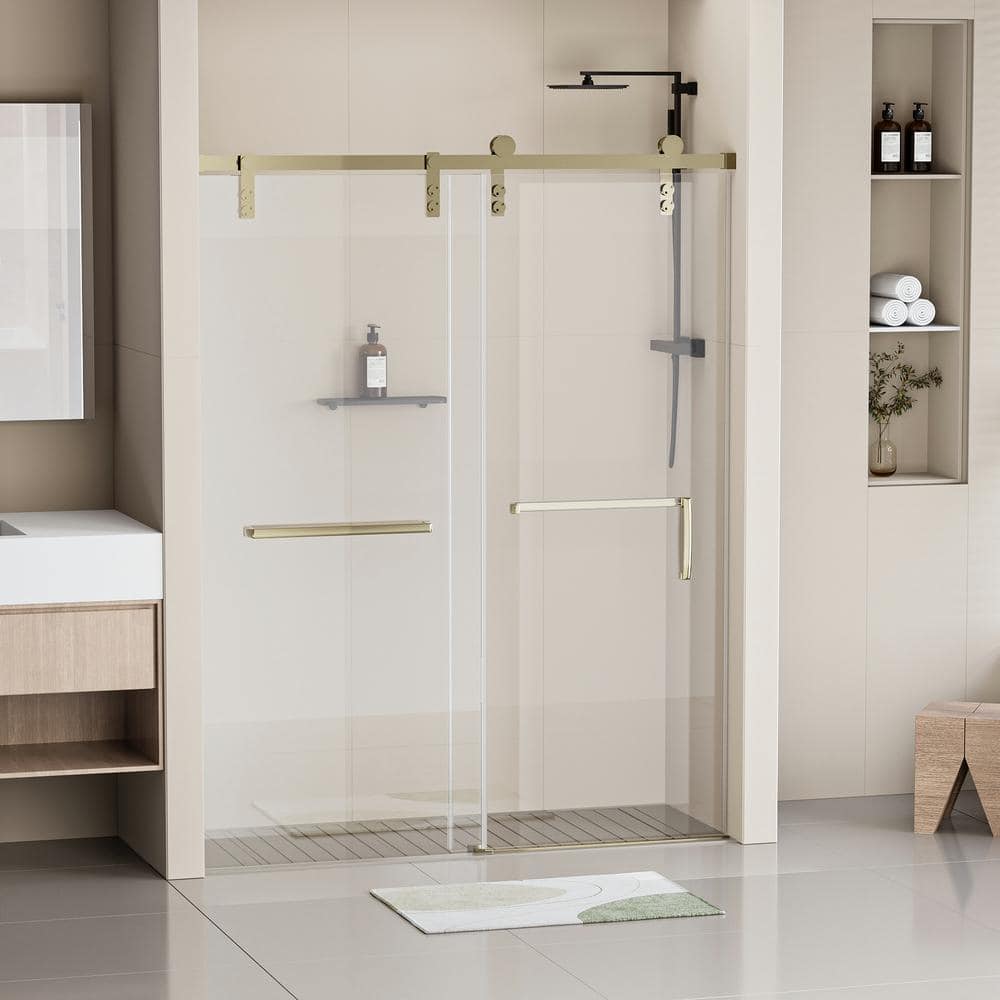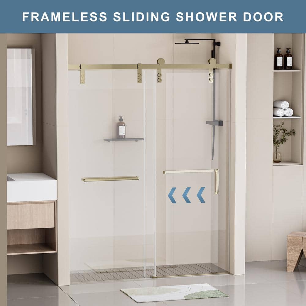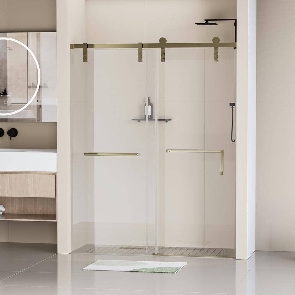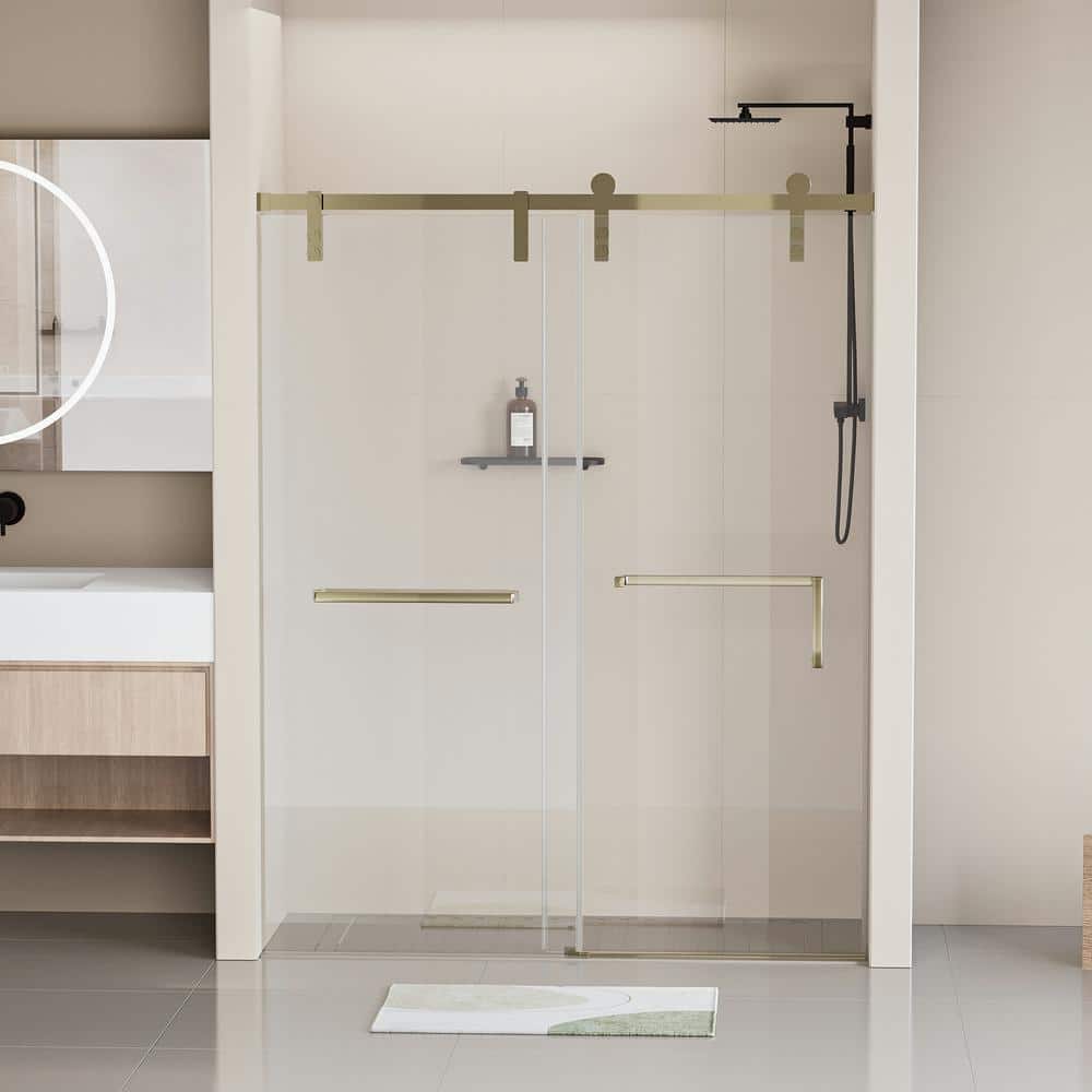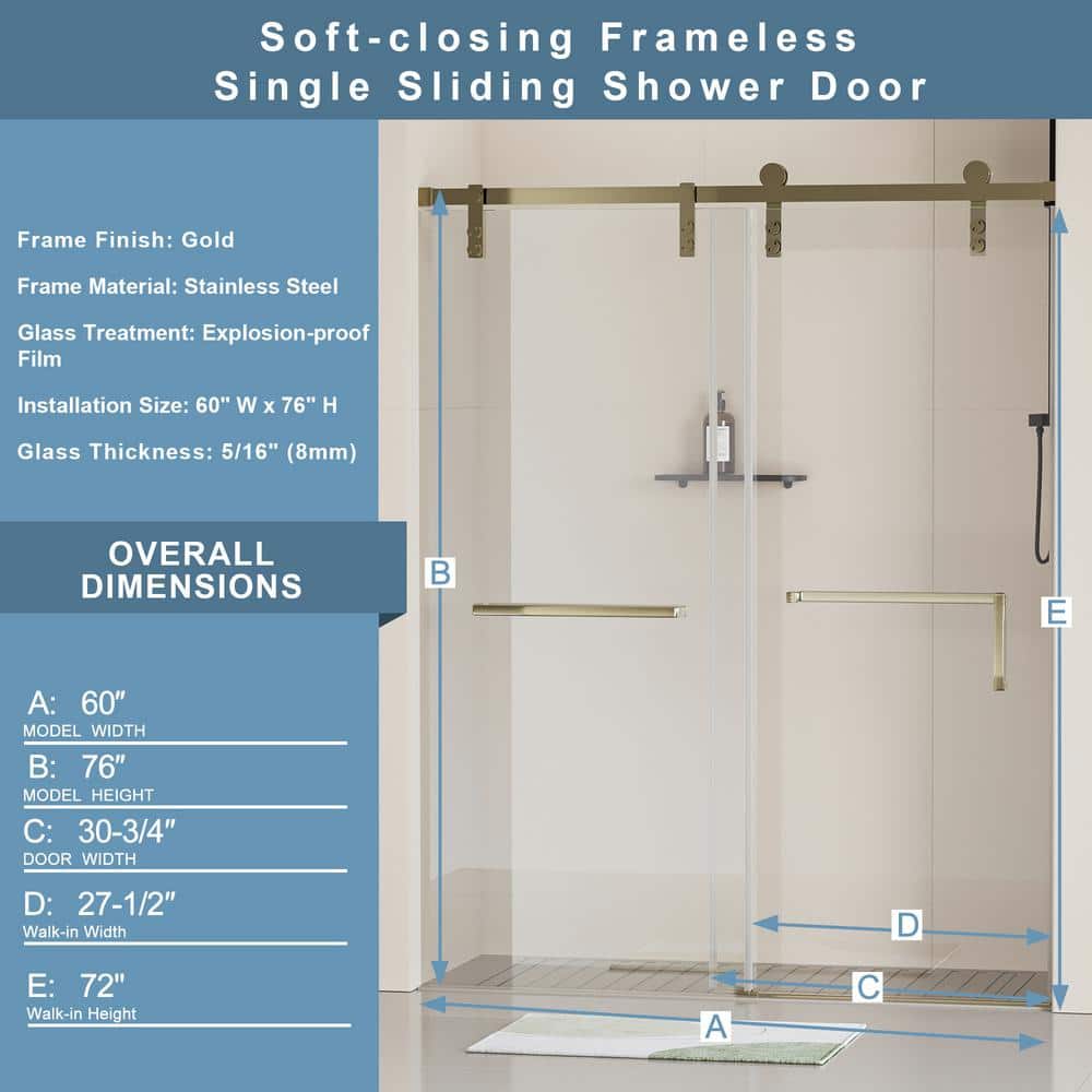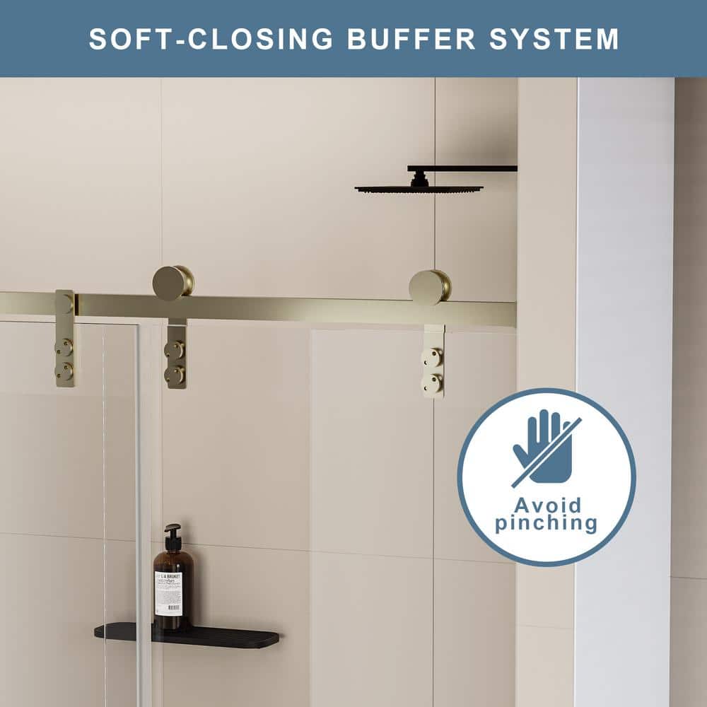 EAKYHOM 60 in. W x 76 in. H Soft Closing Single Sliding Frameless Shower Door in Gold Finish with 5/16 in. Tempered Clear Glass
