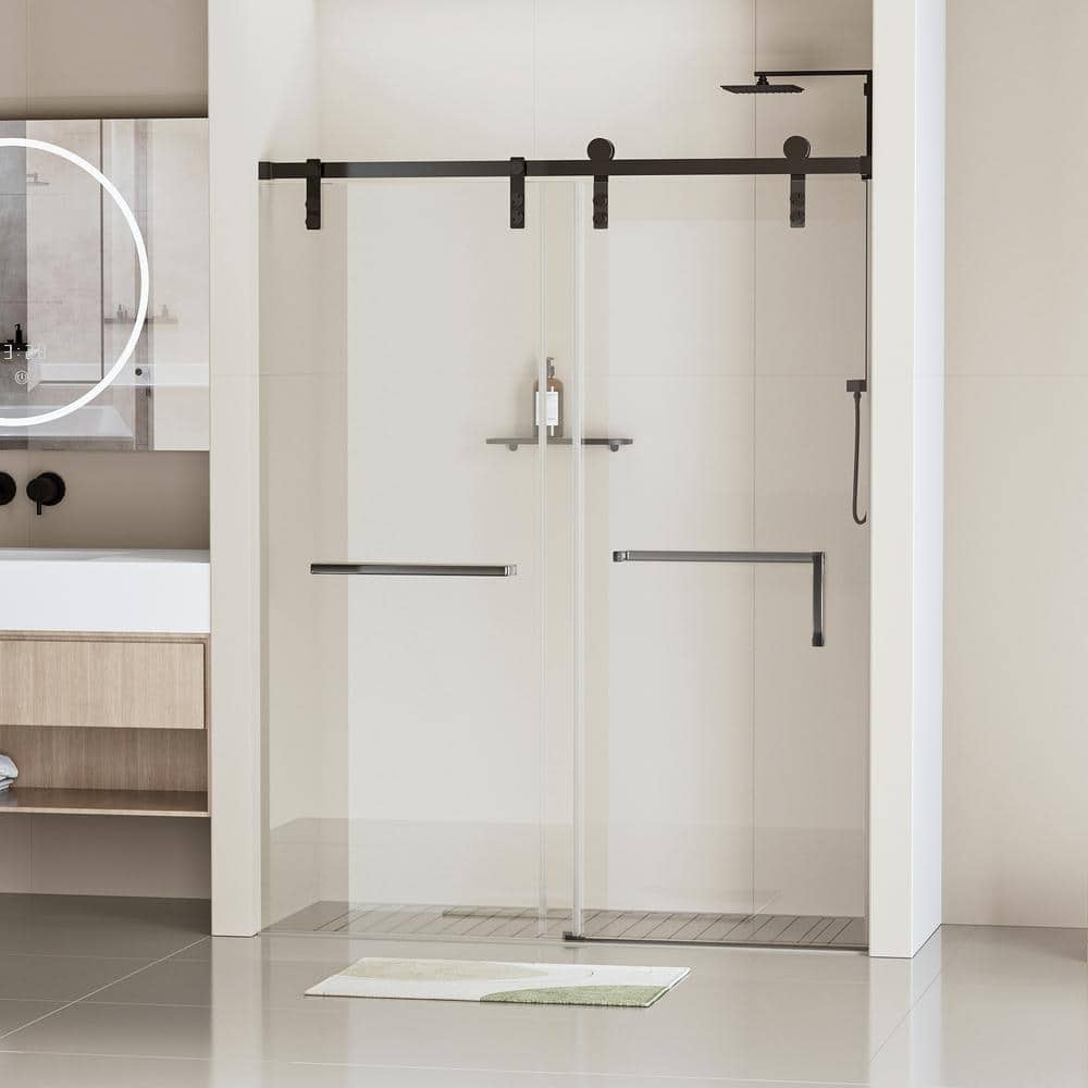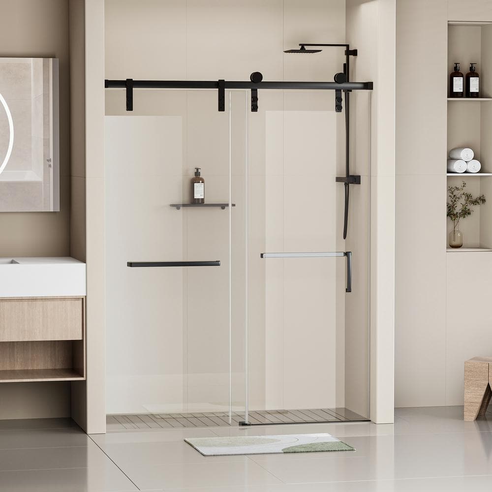 EAKYHOM's Matte Black Frameless Sliding Shower Door offers a sleek and modern solution to upgrade your bathroom. With its soft-closing mechanism and durable, explosion-proof tempered glass, it delivers both functionality and style, ensuring a safe and luxurious shower experience.