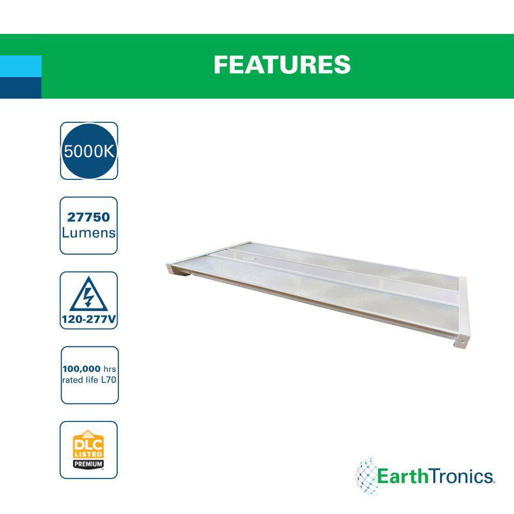 Illuminate your commercial spaces with the EarthTronics Premium Series High Bay Lights. Boasting 27750 lumens and a clean 5000K daylight glow, these LED lights are engineered for efficiency and performance. Ideal for warehouses and industrial settings, they are dimmable and come with diverse mounting options to fit various installations.