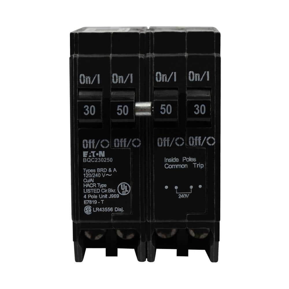 Eaton BR 1-30 Amp 2 Pole and 1-50 Amp 2 Pole BQC (Common Trip) Quad Circuit Breaker