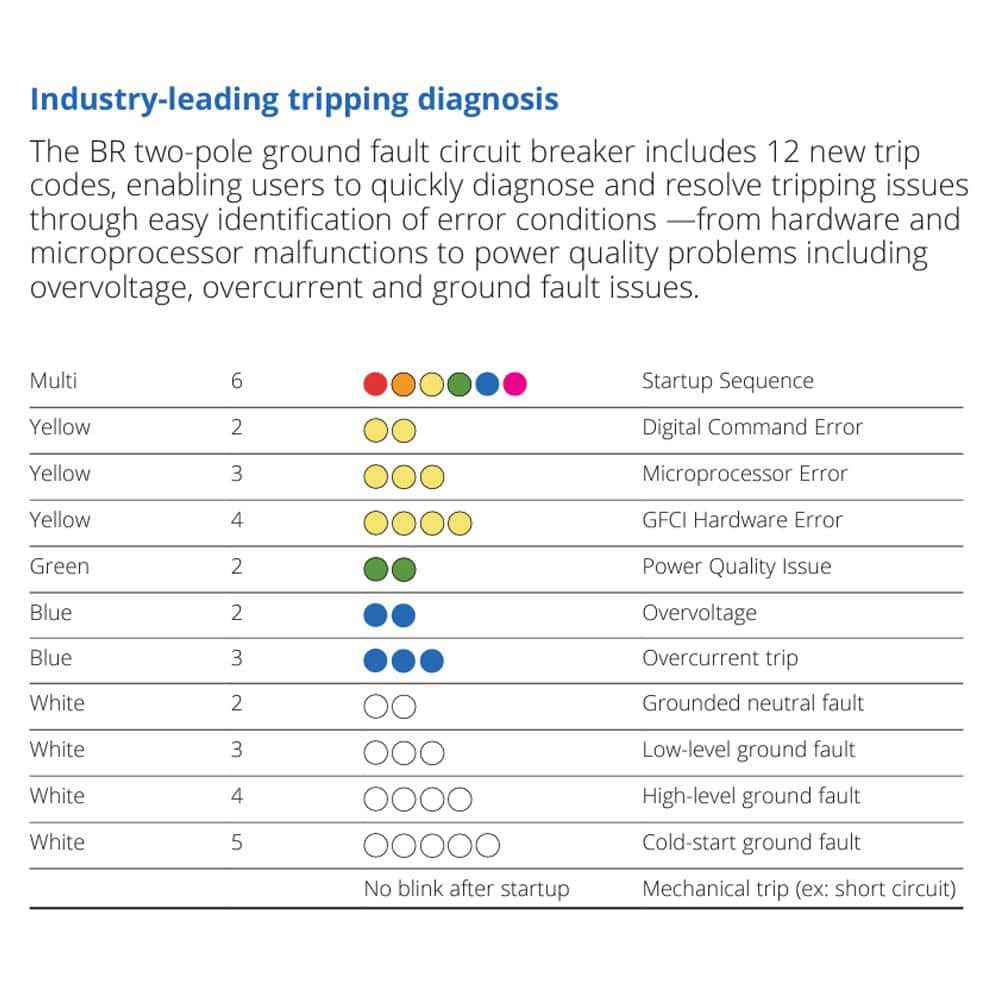 Equip your electrical system with Eaton's BR 50 Amp 2-Pole GFCI Circuit Breaker, tailored for optimal ground fault protection in 240V applications. Featuring microprocessor-based decision-making, it delivers precise and rapid responses to faults, minimizing unnecessary trips and enhancing troubleshooting accuracy through its LED trip code indicators.