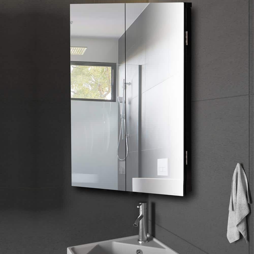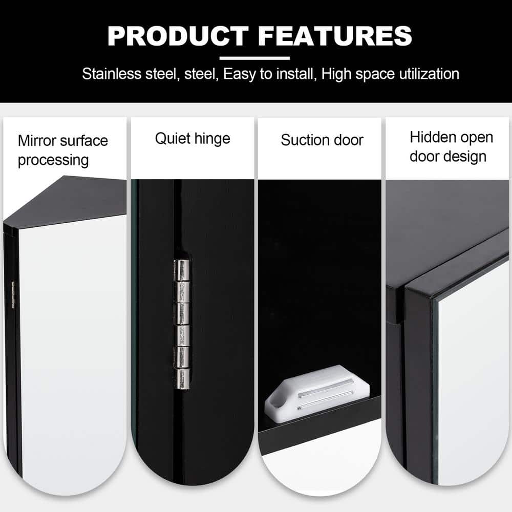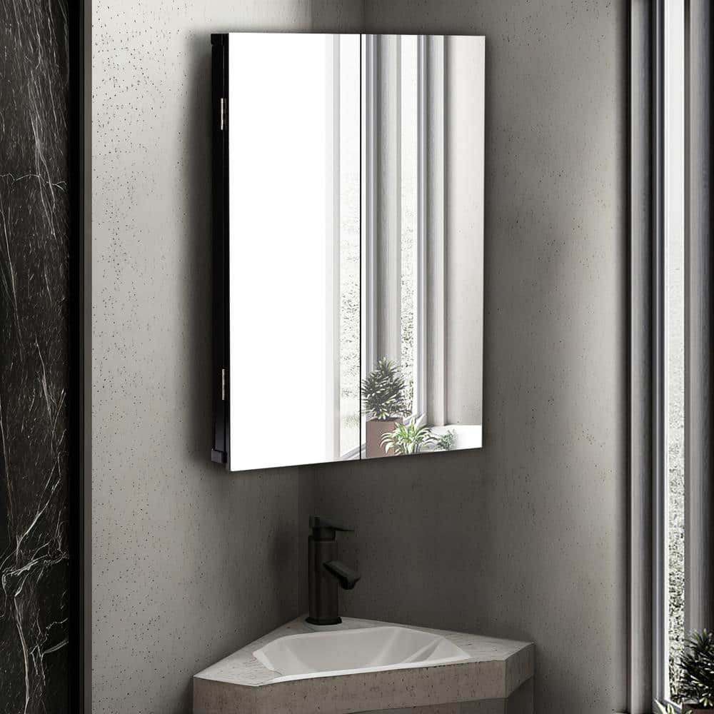 Transform your bathroom into a sanctuary of sleek elegance with this corner-mounted medicine cabinet by eclife. Its frameless mirror front lends a modern flair, making it a striking addition to any setting. Let its generous storage capacity and dual swinging doors redefine how you organize everyday essentials. Style it as the centerpiece of a minimalist bathroom design, where its black finish acts as a bold counterpoint to a neutral palette. Essential for efficient living, it reflects both your style and meticulous attention to detail.