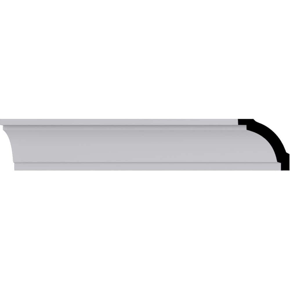 Transform your space with the Ekena Millwork Tyrone Smooth Crown Moulding, a classic 1-1/2 inch polyurethane trim that defines and enhances any room. This lightweight and detailed moulding mimics traditional plaster designs at a substantially lower cost. It is factory primed, ready for customization, and impervious to rot and insects, ensuring durability indoors and out.