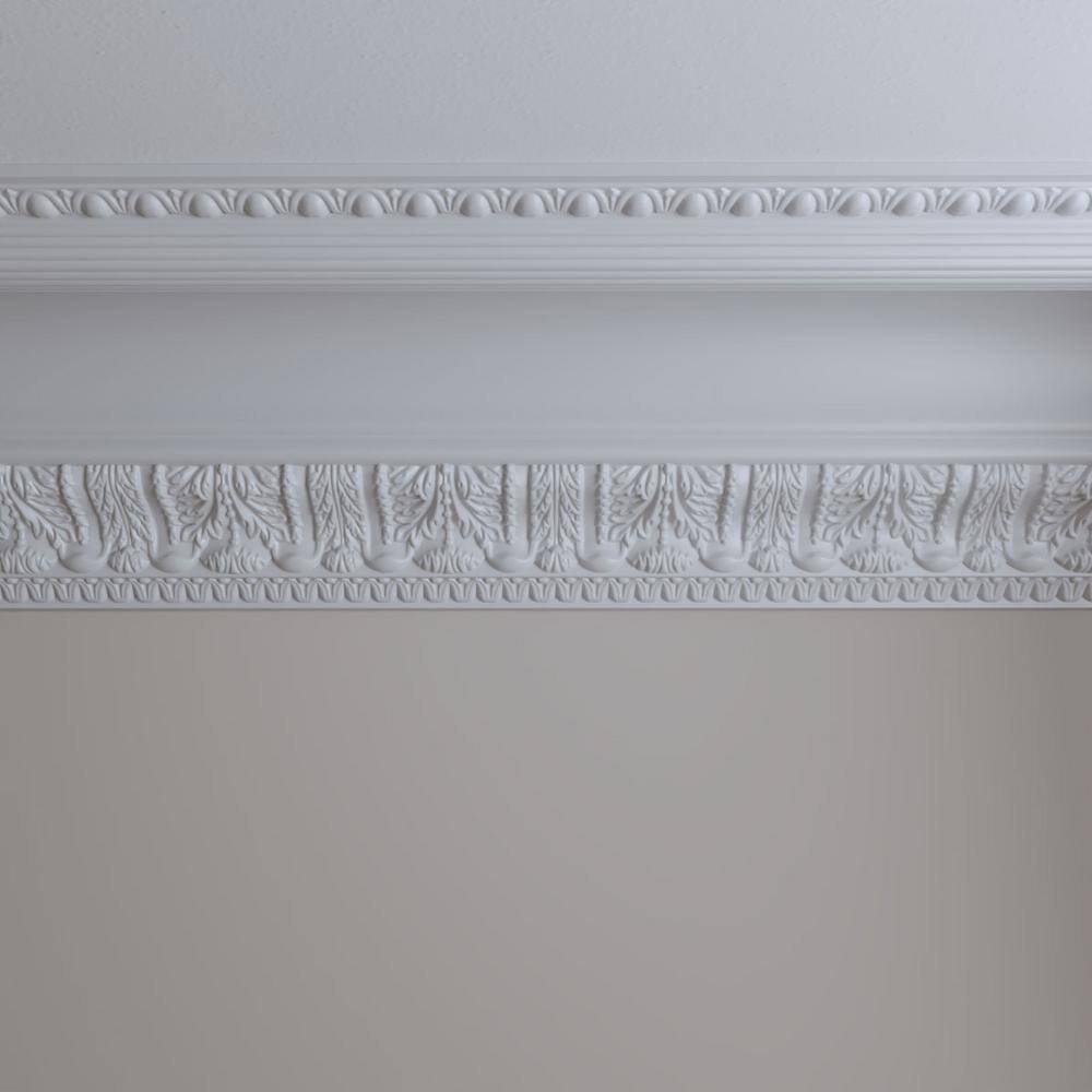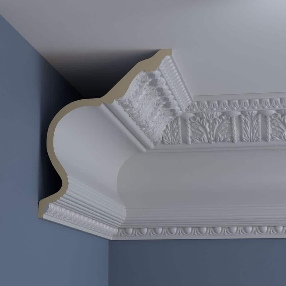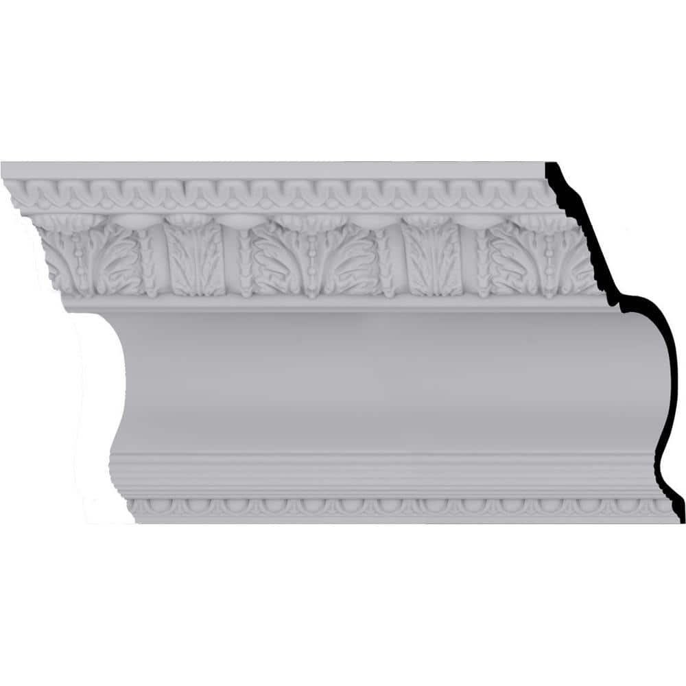 Elevate your interior design with the Ekena Millwork Egg and Dart Acanthus Crown Moulding. Made from durable polyurethane, it replicates traditional plaster profiles at a fraction of the weight and cost. This moulding resists moisture and insects, ensuring a long-lasting decorative touch for any room.