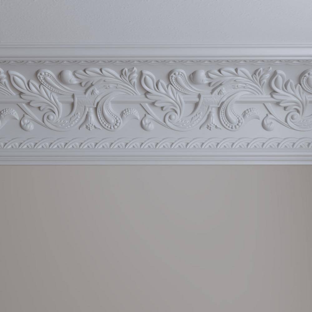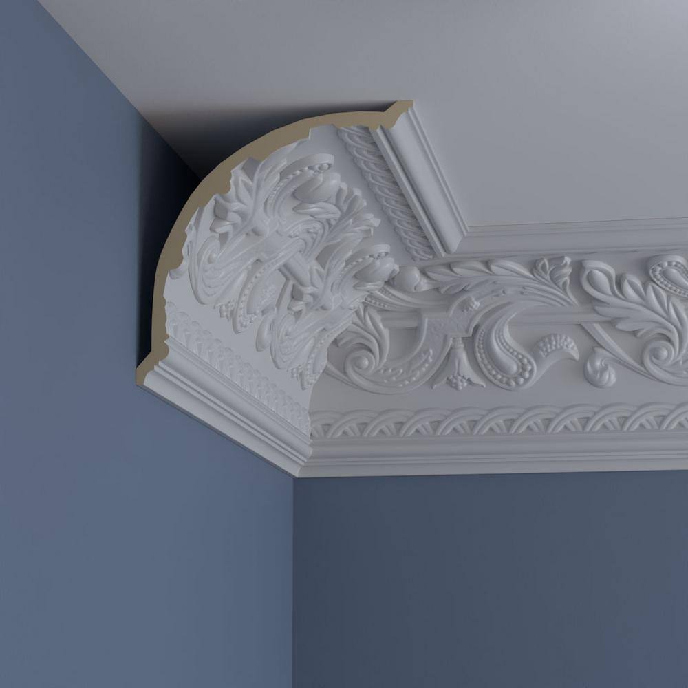 A: This moulding replicates the intricate designs of traditional plaster, but it is lightweight, insect-resistant, and won’t warp or crack like wood.