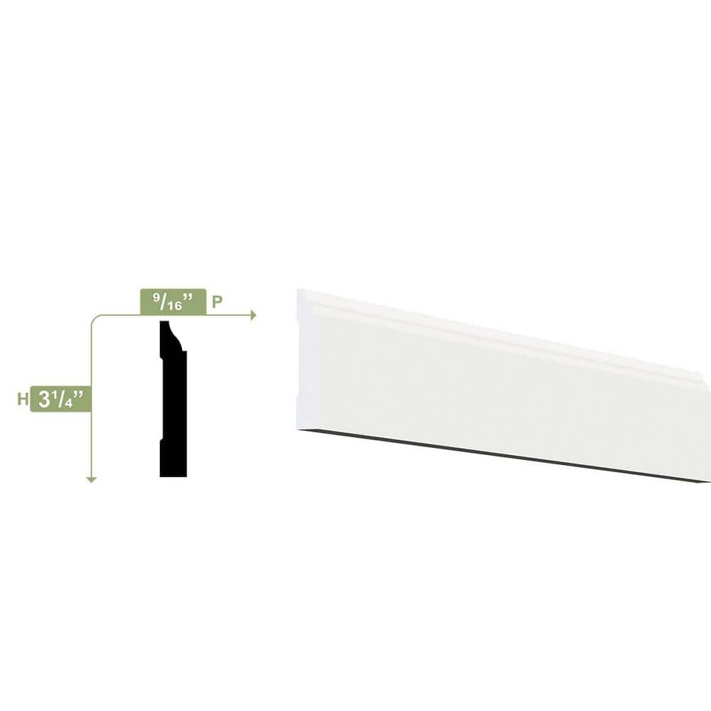 Enhance any space with Ekena Millwork's 3-1/4 in. x 1/2 in. x 96 in. PVC Base Moulding. This moulding offers a water-resistant and insect-proof design, perfect for both interior and exterior applications. It features a pre-finished white surface for easy installation and minimal upkeep.
