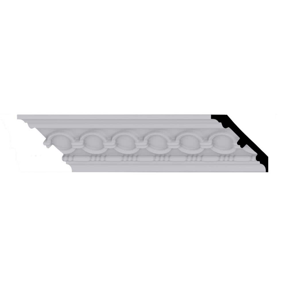 Enhance your space with the timeless elegance of Ekena Millwork's 3-1/8 in. x 94-1/2 in. Polyurethane Foster Coin and Bead Crown Moulding. Modeled after classic plaster mouldings, it offers intricate detail with the lightweight convenience of polyurethane. Factory primed and ready to customize, this moulding is resistant to moisture and insects, ensuring long-lasting beauty both indoors and out.