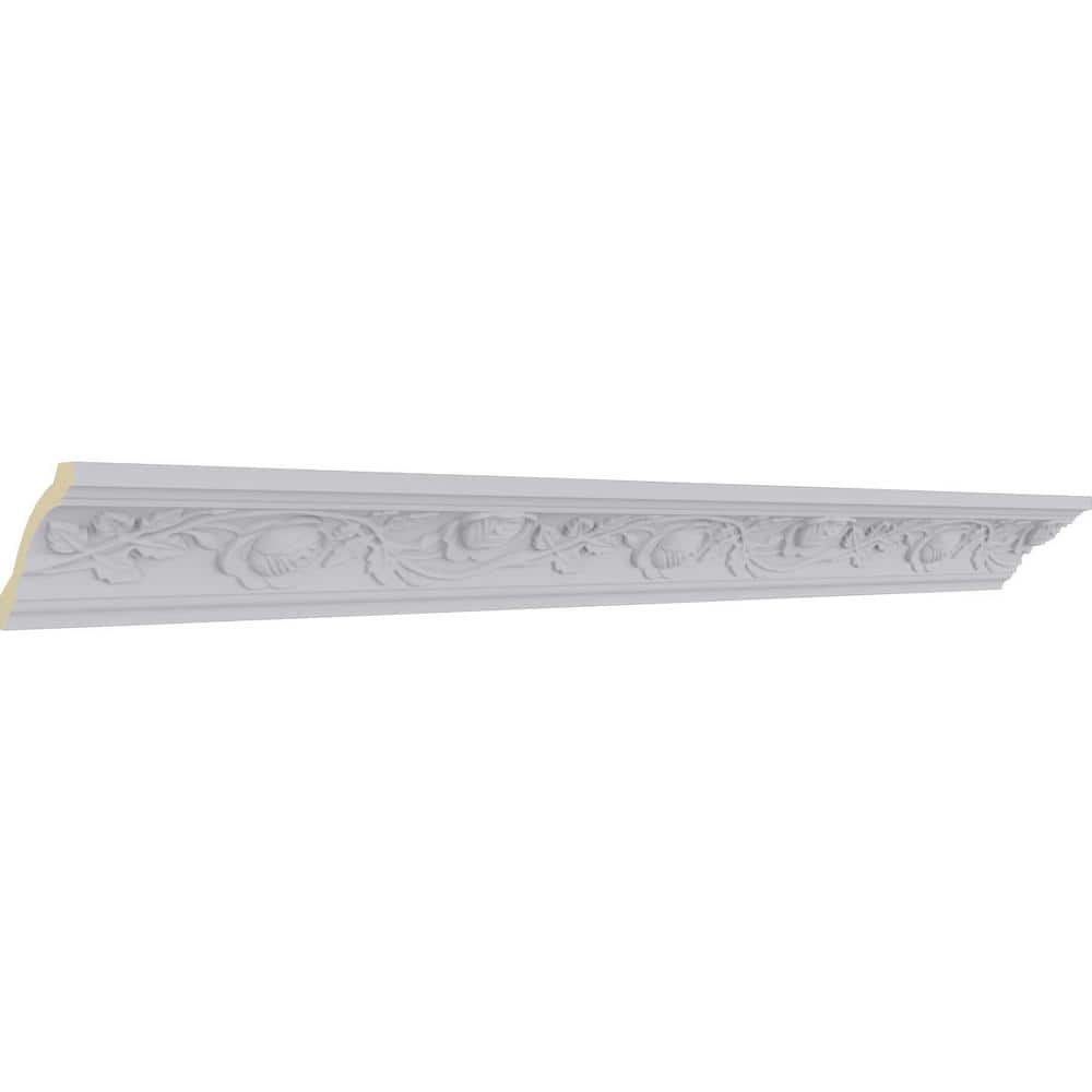 Ekena Millwork 3-3/4 in. x 3-1/4 in. x 94-1/2 in. Polyurethane Bulwark Rose Crown Moulding