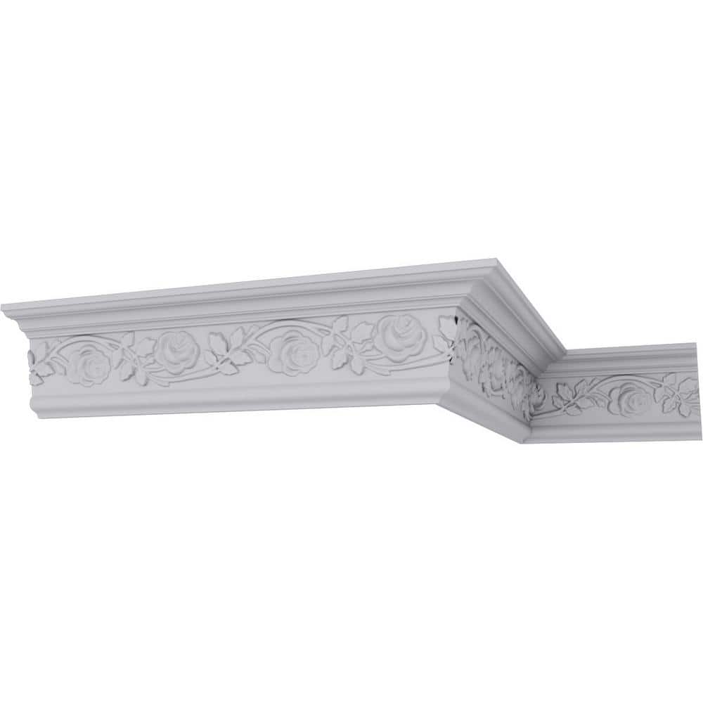 Ekena Millwork 3-3/4 in. x 5-1/2 in. x 94-1/2 in. Polyurethane Rose Crown Moulding