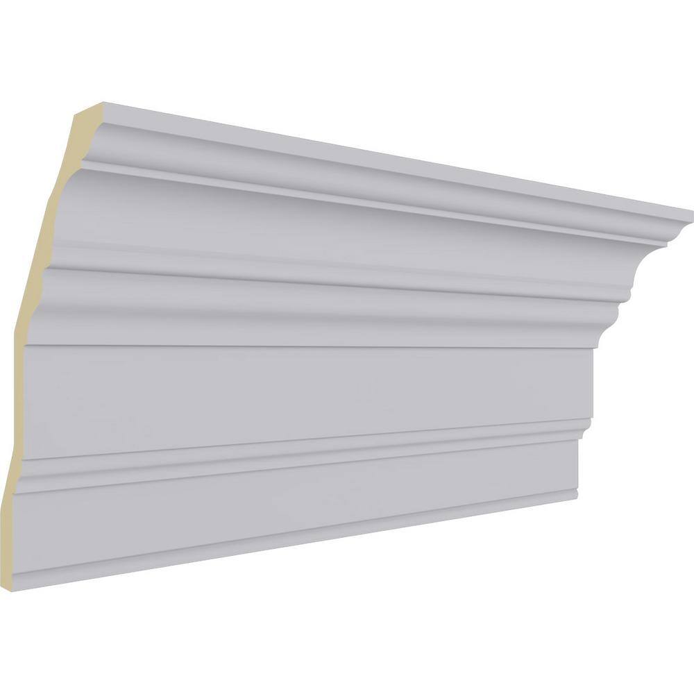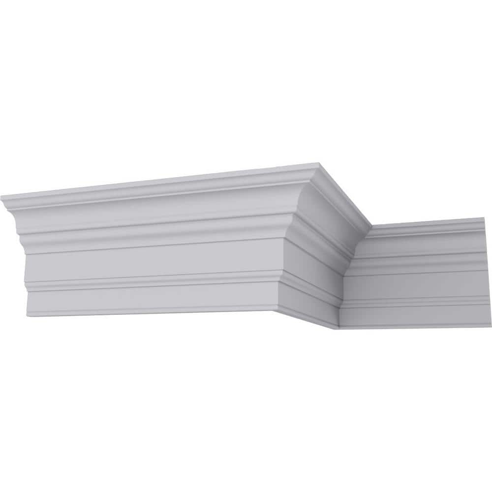 Transform your space with the elegant Ekena Millwork 6-7/8 in. x 13 in. x 94-1/2 in. Polyurethane Eris Smooth Crown Moulding. Featuring a classic design modeled after traditional plaster mouldings, this lightweight and easy-to-install product offers remarkable detail and durability without the high cost. Plus, it's resistant to rot, insects, and moisture, ensuring long-lasting beauty indoors and out.