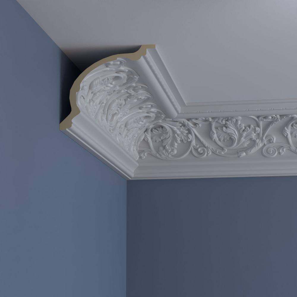 Transform your interiors with the Ekena Millwork Neuveau Crown Moulding, designed for elegance and ease of installation. Made from durable polyurethane, it replicates the look of classic plaster moulding without the weight or cost, providing rich detail resistant to moisture and insects.