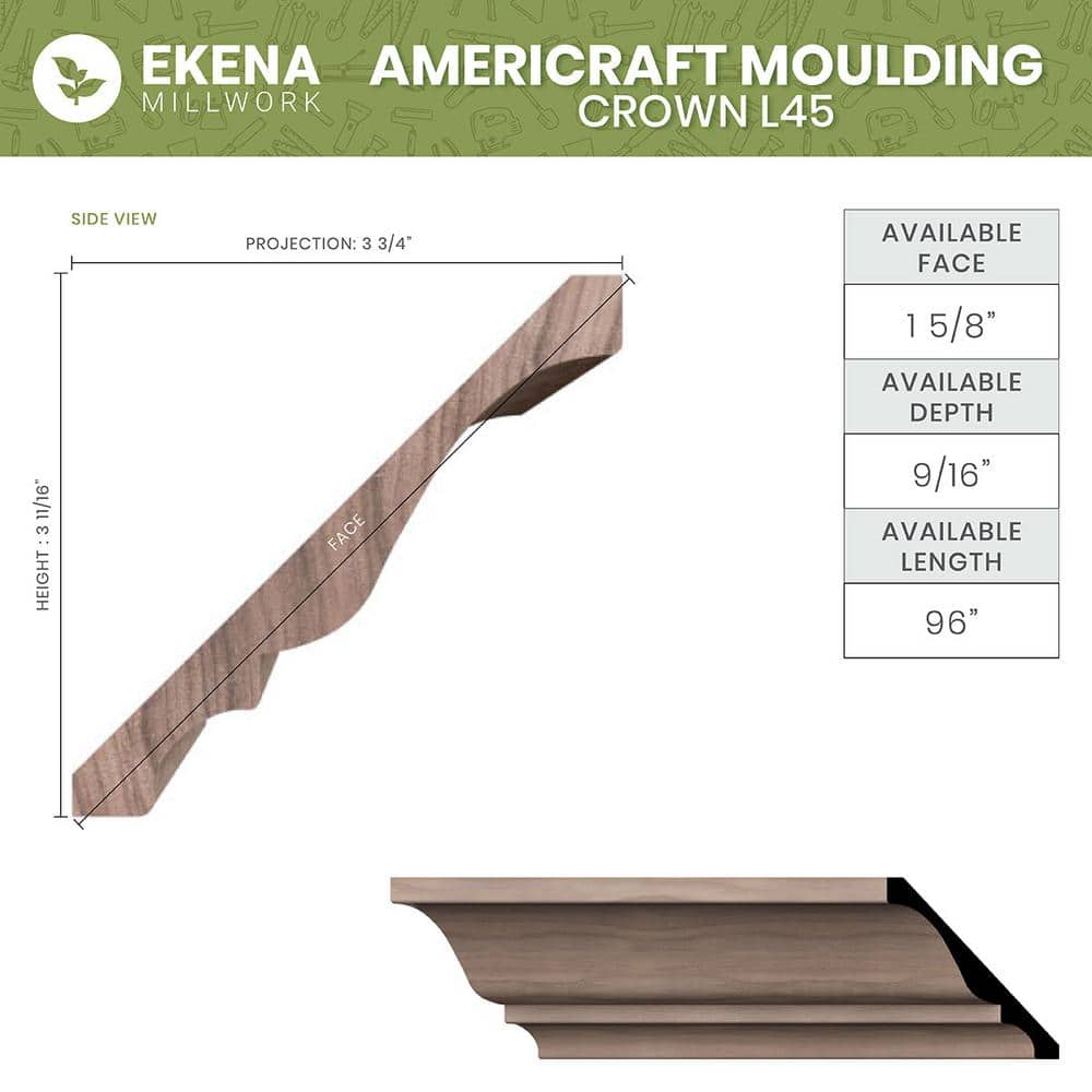 Transform your space with Ekena Millwork's Maple Wood Crown Moulding. Made from solid maple, this moulding boasts a natural wood grain for a luxurious and sophisticated finish. Its durable construction allows for easy installation and customization through painting or staining, seamlessly enhancing your room's aesthetic.