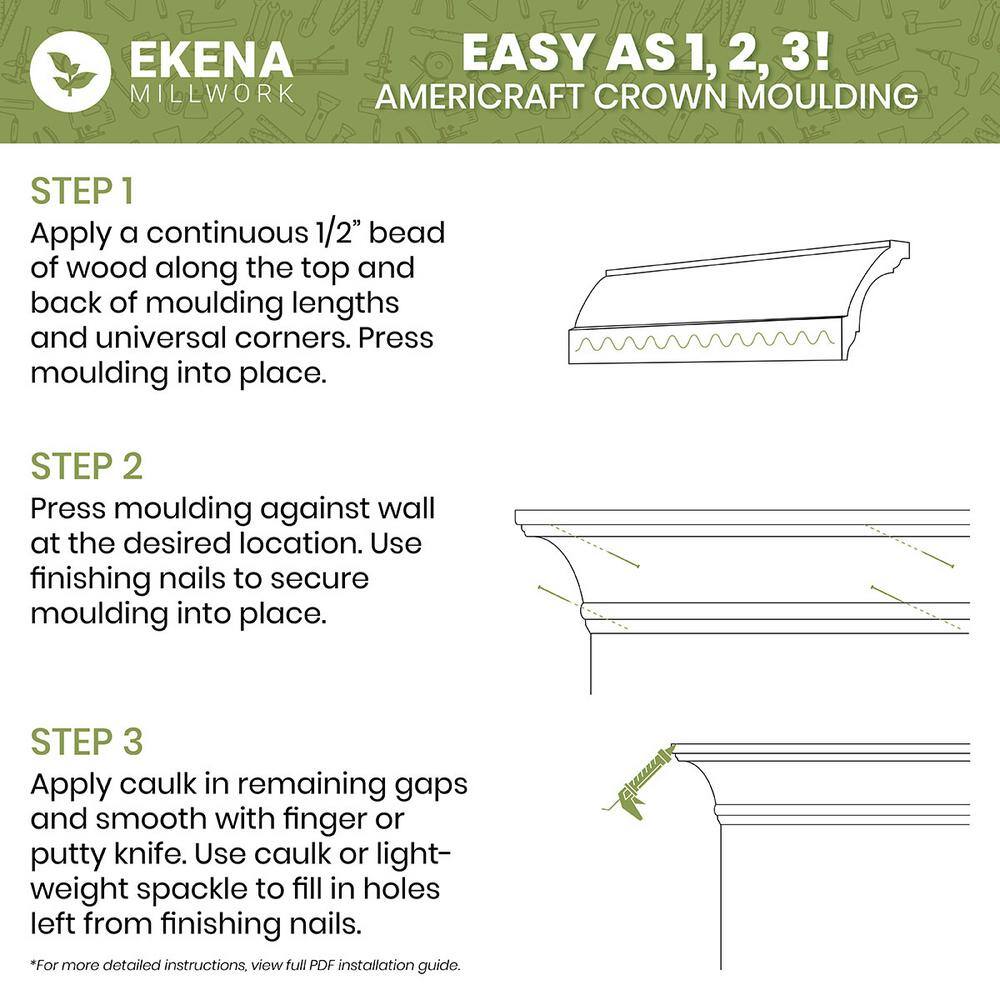 Elevate your home's decor with Ekena Millwork's Pine Wood Crown Moulding. Its natural variations and woodgrain add a touch of sophistication to any room, while the solid wood construction ensures durability and longevity. Easily installed, it provides a seamless finish to walls and ceilings.