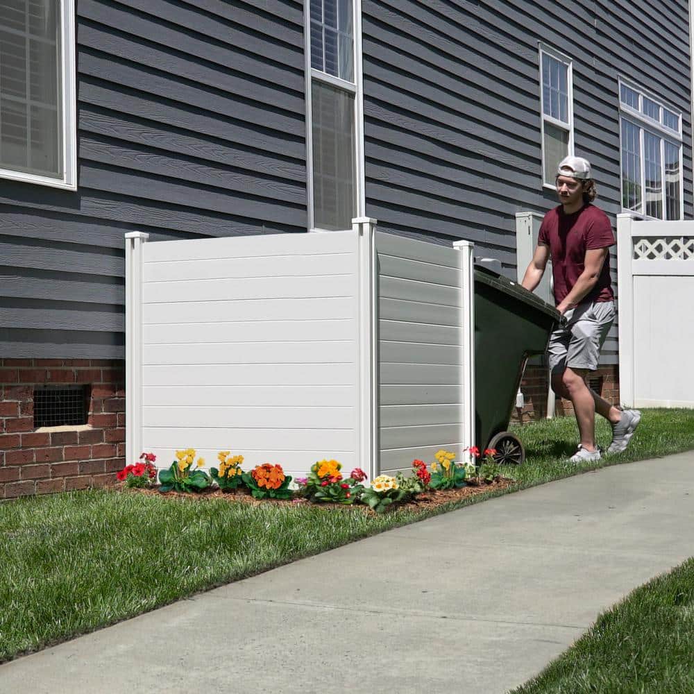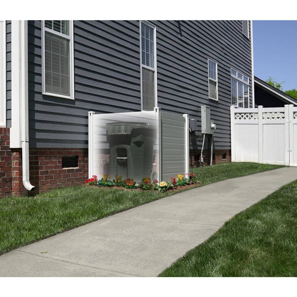 Enhance your home's exterior with the Enclo Privacy Screens 4 ft. x 4 ft. Premium White Vinyl Privacy Fence Panel Screen Enclosure. This no-dig, maintenance-free vinyl panel easily beautifies outdoor spaces while keeping unsightly items like trash bins hidden. Durable and weather-resistant, it's designed to elevate your landscape effortlessly.