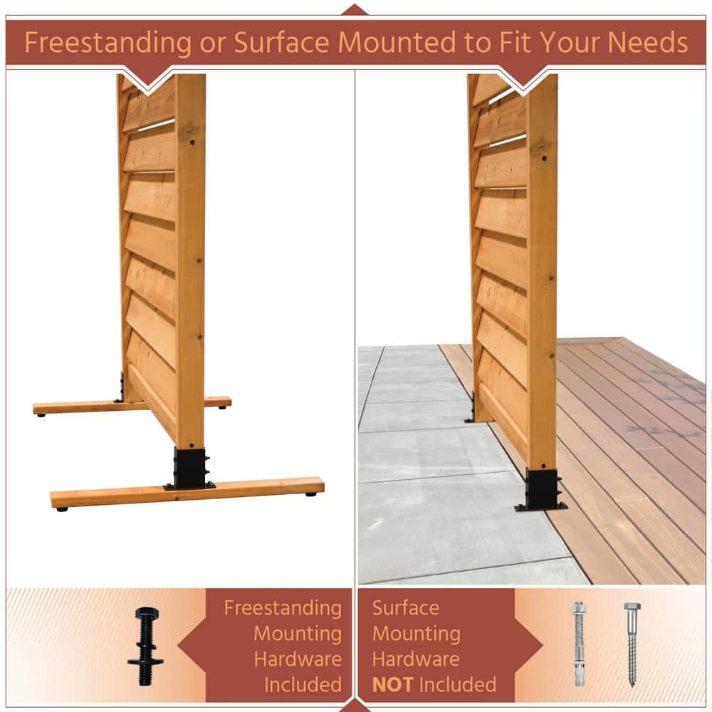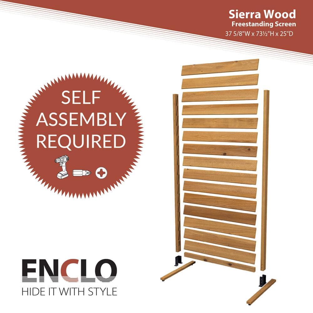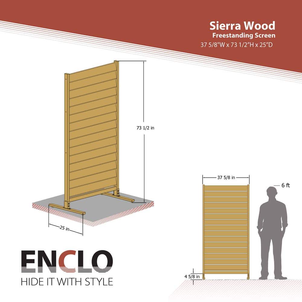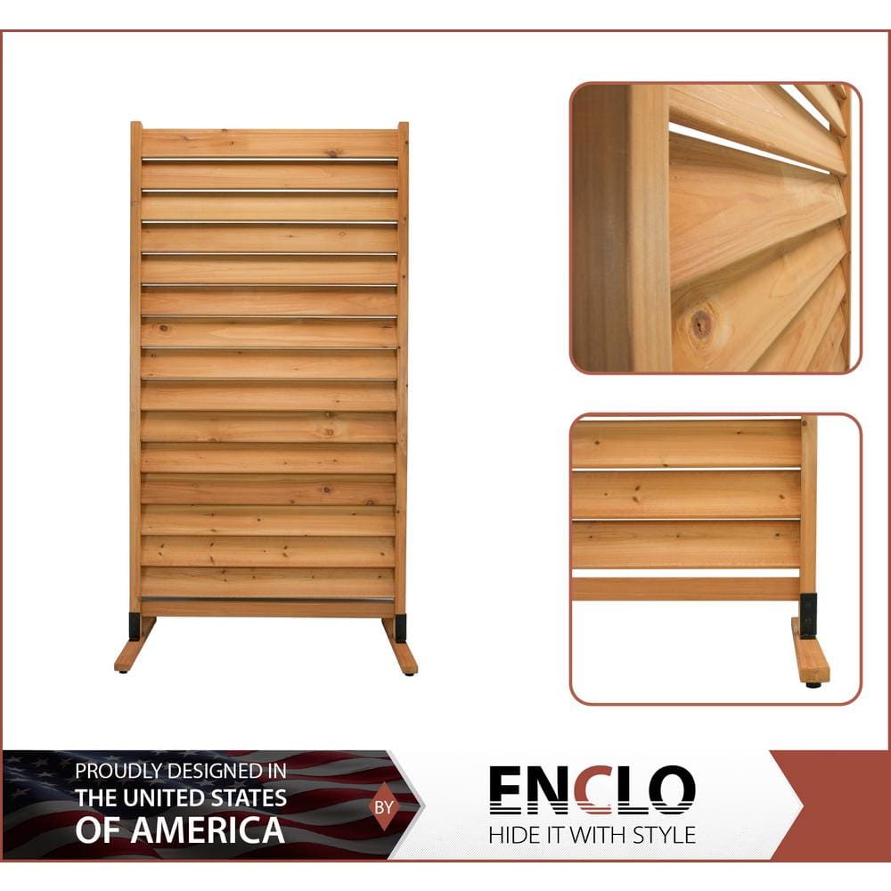 Transform your outdoor or indoor space with the Enclo Privacy Screens Sierra Louvered Wood Privacy Screen. Standing 6 feet tall, this elegant and functional screen offers both privacy and aesthetic appeal with its versatile louvered slats, suitable for freestanding or surface-mounted installation.