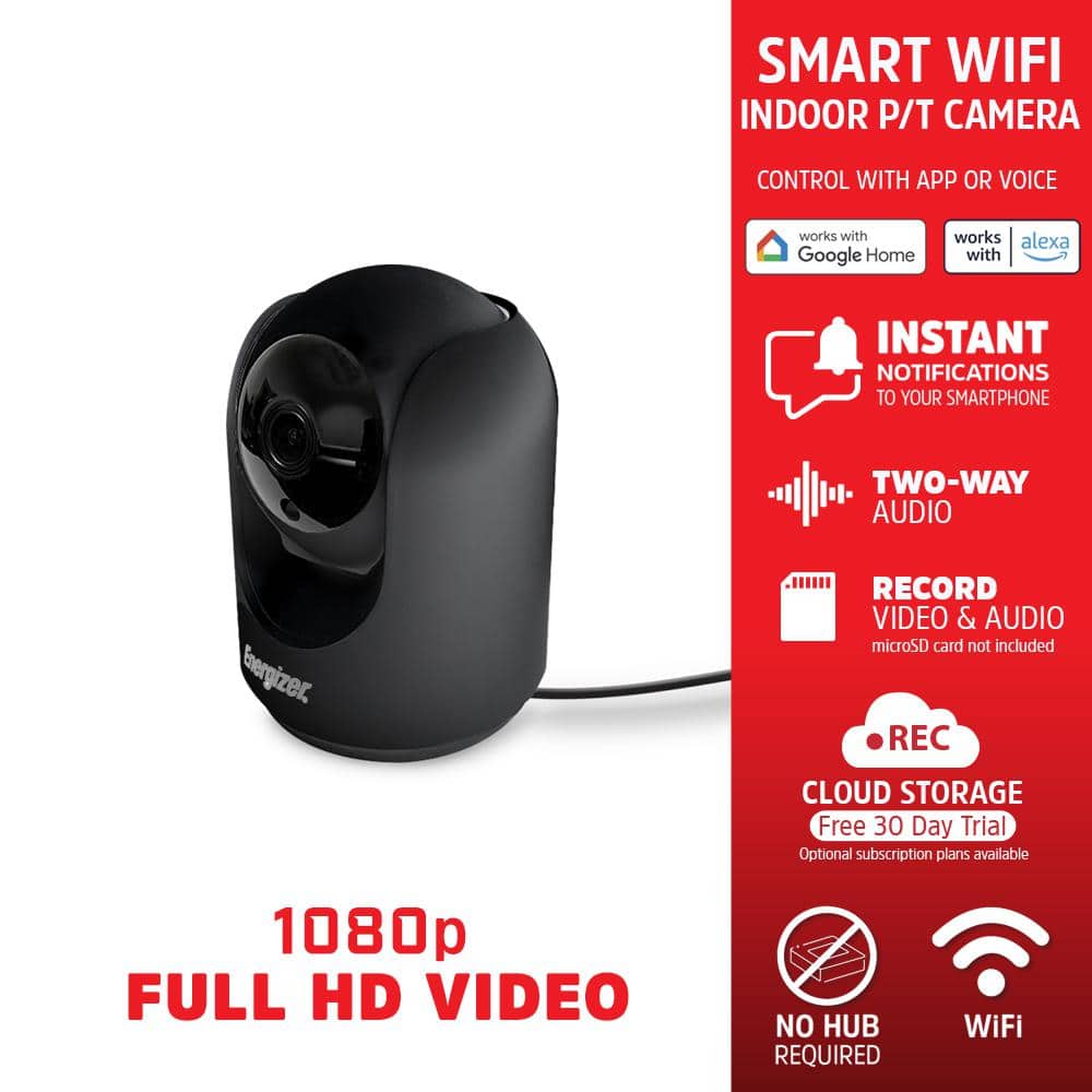 Enhance your home's security and style with the Energizer Indoor Pan & Tilt Camera today—peace of mind is just a click away.