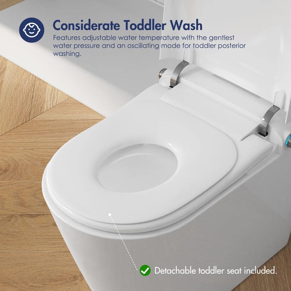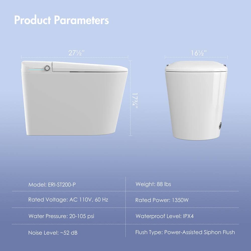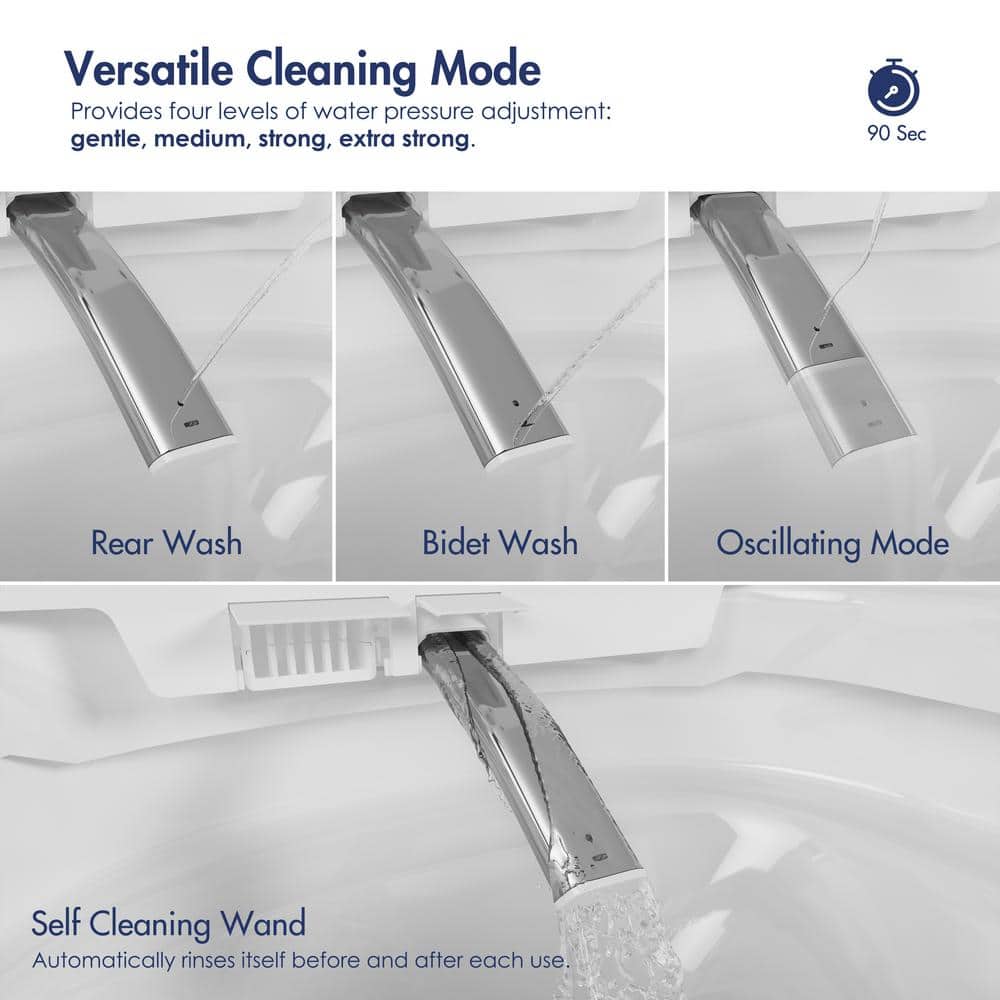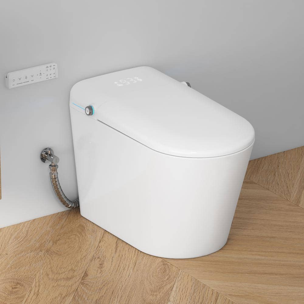 Revolutionize your bathroom experience with the Eridanus 1-Piece Elongated Smart Bidet Toilet. Featuring advanced technology like automatic flushing, a heated seat, and a remote control, this luxurious toilet combines elegance and intelligence for unparalleled hygiene and comfort.