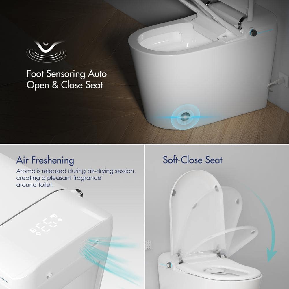 Adjustable Aerated Wash Spray,Adjustable Water Pressure,Air Purifier,Automatic Close,Automatic Open,Chip Resistant,Fade Resistant,Feminine Wash,Heated,Lighted,Motion Sensing,Nozzle Sterilization,Posterior Wash,Remote Control Operation,Soft Close,Stainless Steel Nozzle,Warm Air Dryer,Warm Water Wash |