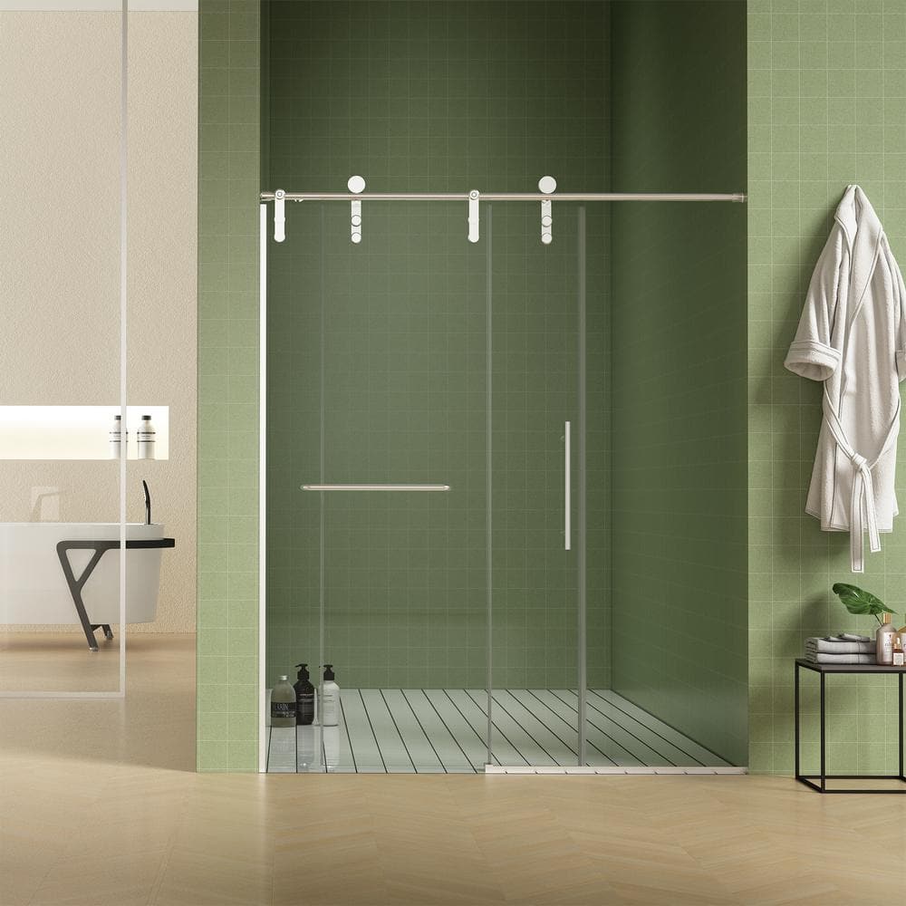 ES-DIY 56-60 in. W x 70 in. H Soft-Closing Sliding Frameless Shower Door in Nickel with 5/16 in. (8 mm) Clear Glass