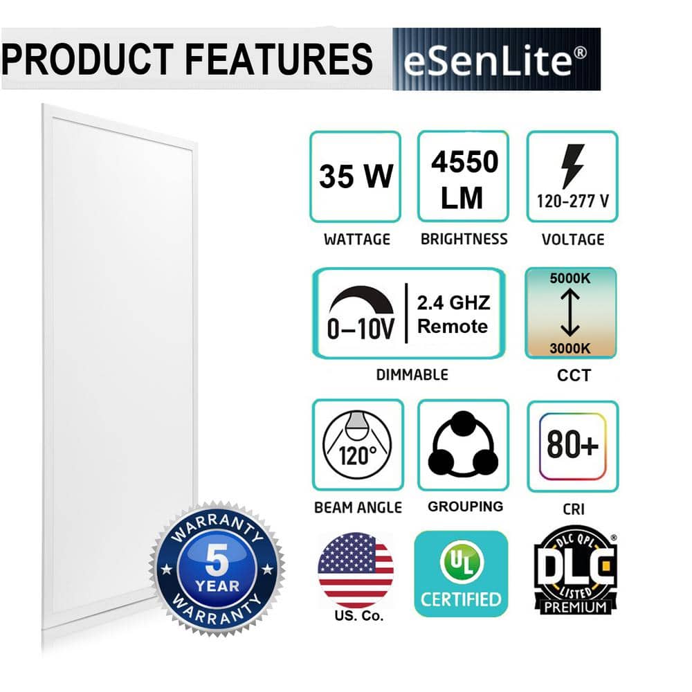 eSenLite 1x4 ft Dimmable LED Panel Troffer