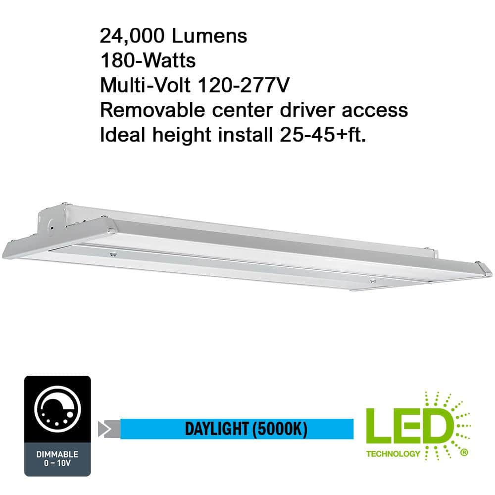 Illuminate large spaces efficiently with these ETI LIGHTING 2-ft Integrated LED High Bay Lights. Delivering 24,000 lumens with just 180 watts, these fixtures offer energy savings and high performance for commercial settings. The durable construction includes a shatter-resistant lens and dimmable functionality to suit various lighting needs.