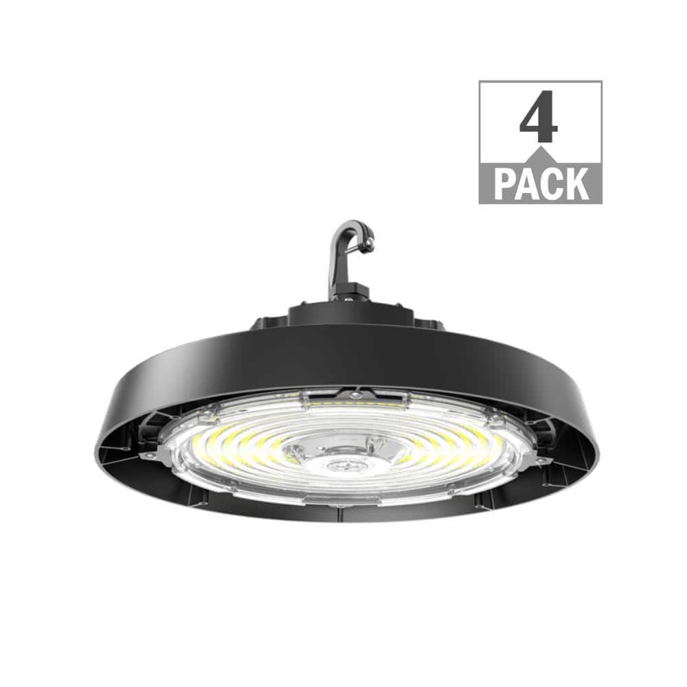ETI LIGHTING 400-Watt Equivalent 11 in. Round Integrated LED Black High Bay Light 27000-36000 Lumens Adjustable CCT (4-Pack)