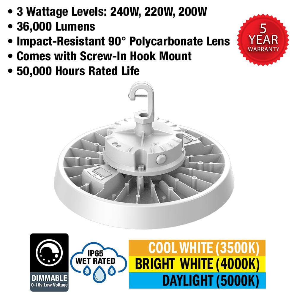 • Selectable Wattage: Choose from 200W, 220W, or 240W for tailored illumination.